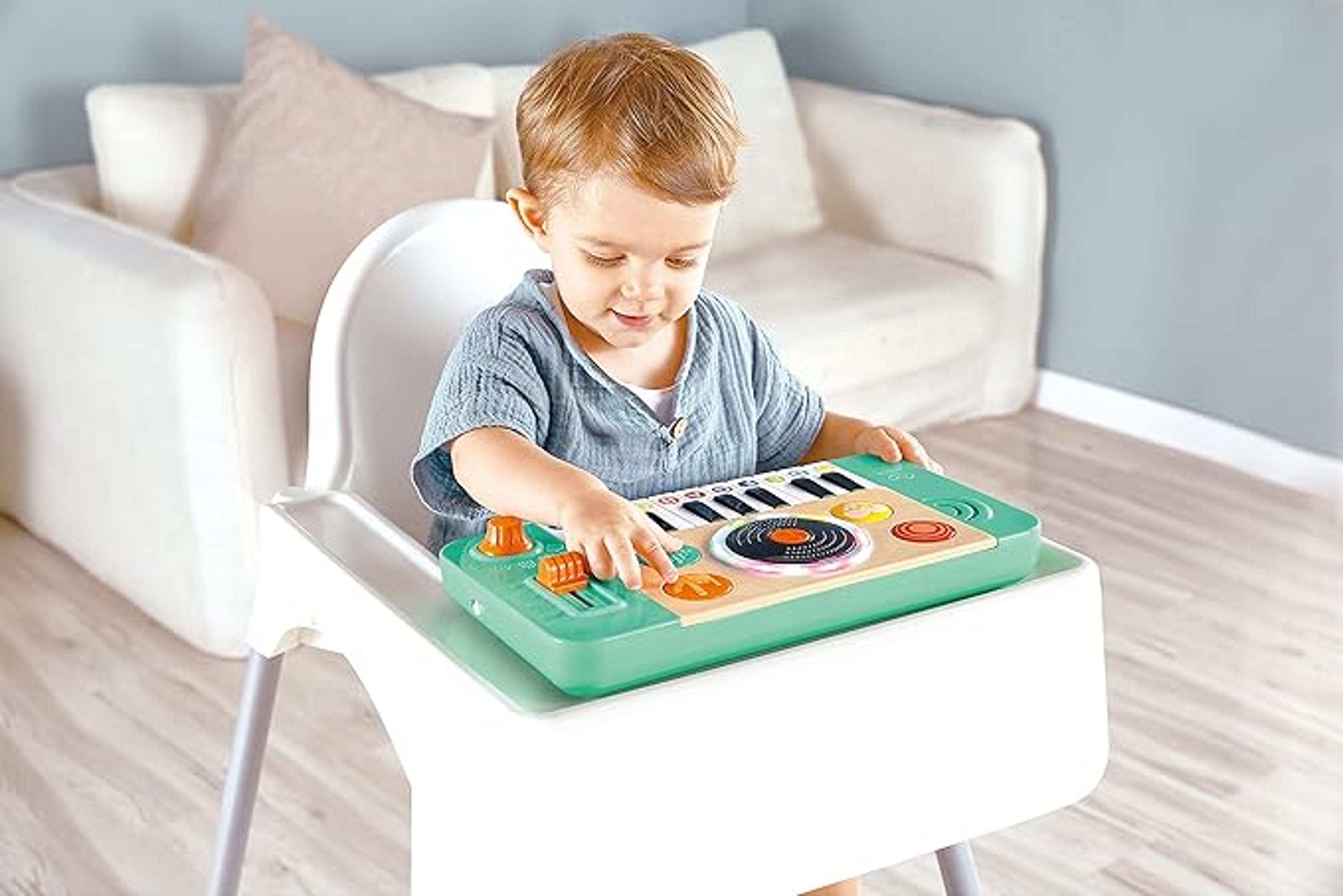 Play the keyboard solo. Turn the knob to select one of four instrument sounds or 18 fun sound effects