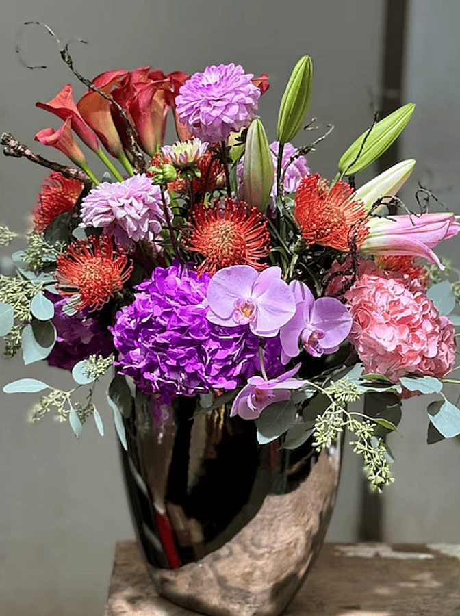 Wow Wow is calling it like it is! This piece comes in a beautiful container and is filled with high-end South American and Holland flowers! Enjoy.