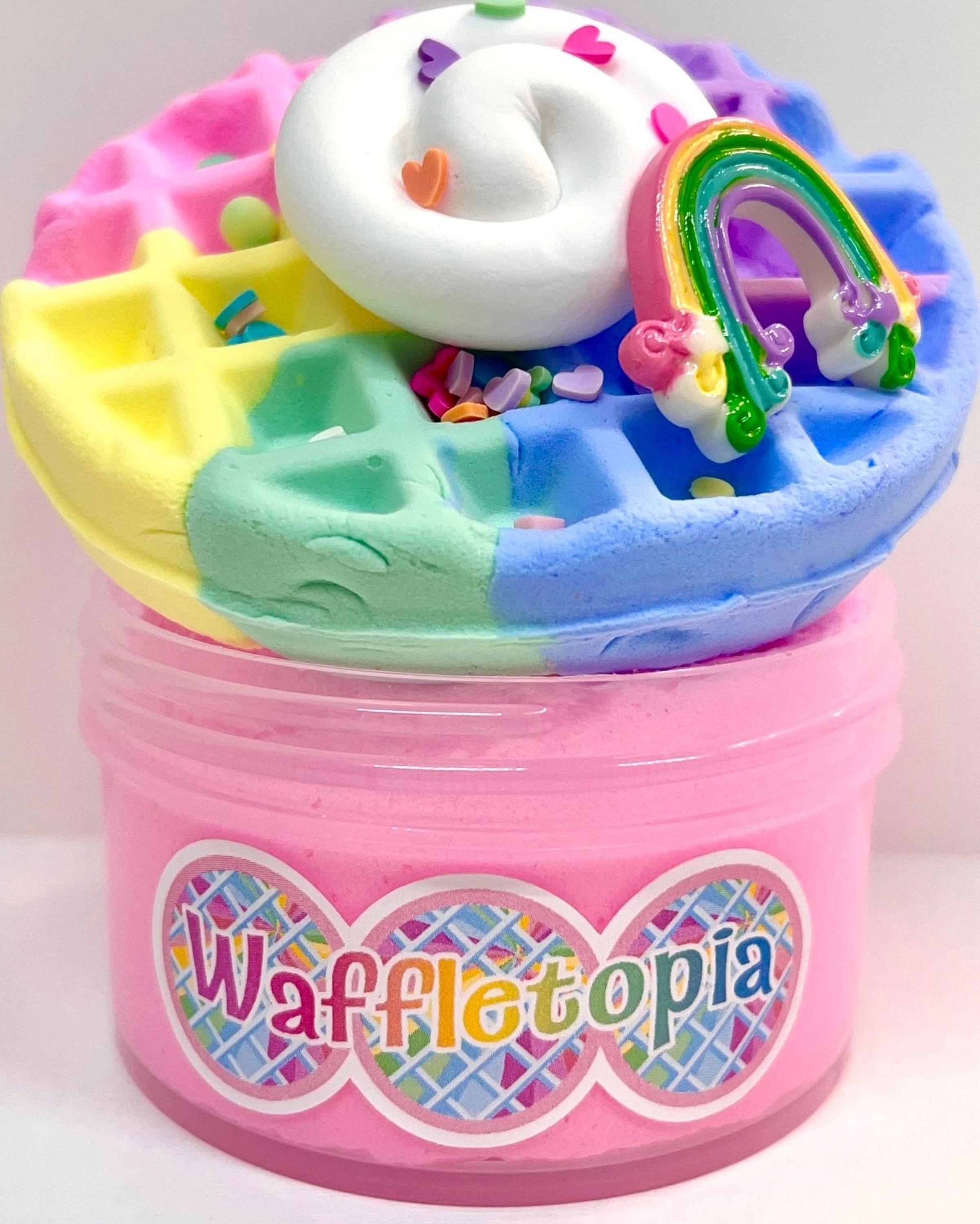 Indulge in Waffletopia, a dreamy pink cloud dough slime that’s scented like a creamy taro milkshake. This delightful slime features a soft, fluffy texture and comes with a pastel swirled clay waffle for a touch of whimsical charm. Perfect for a relaxing, sweet-scented sensory experience, Waffletopia is your go-to for a slice of slime heaven.