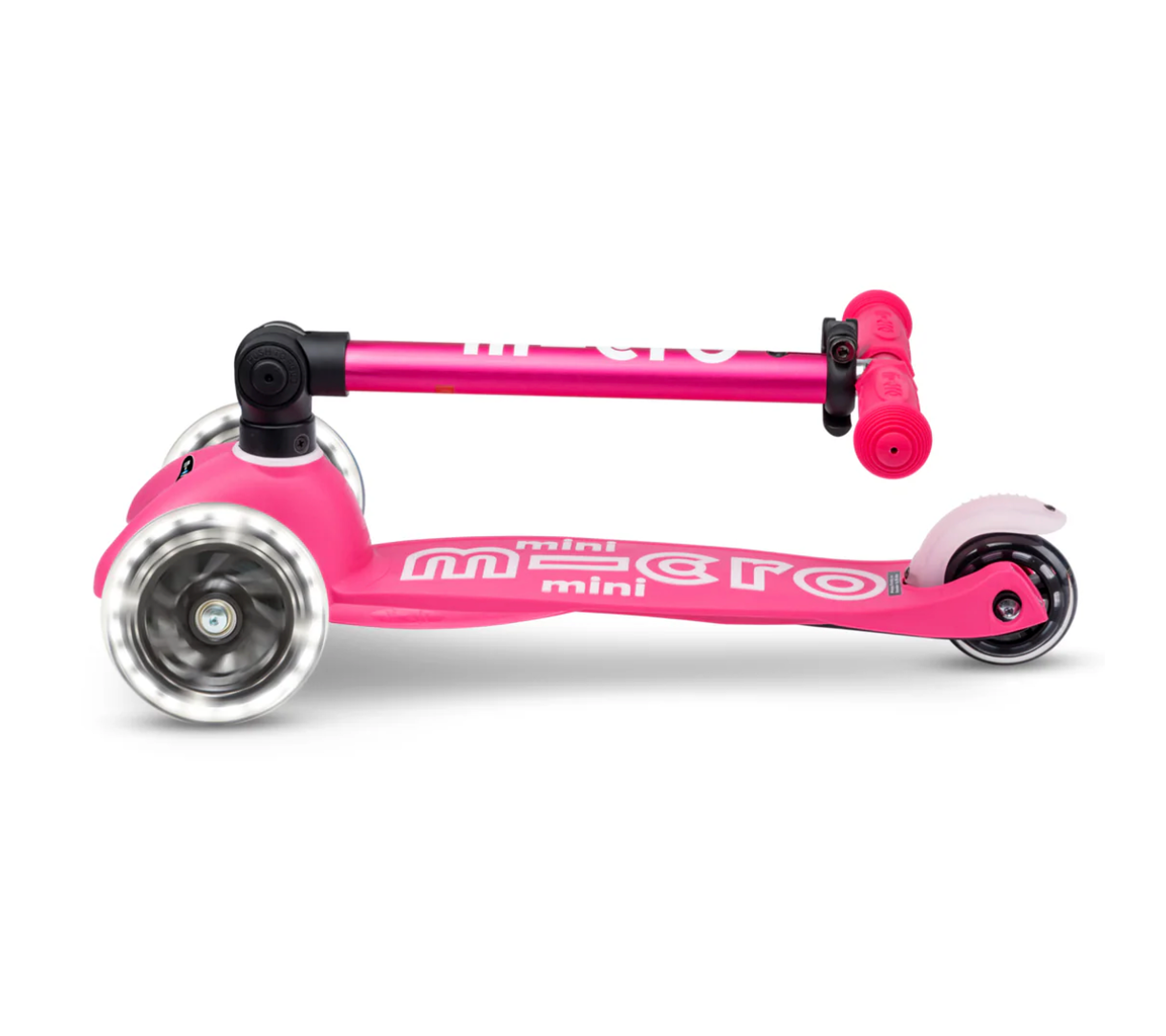 The Foldable LED Mini by Micro is for traveling tots and kids on the go. The new folding mechanism means that taking your child’s Mini with you wherever you go is now easier than ever - just click, fold, and carry by the T-bar. Plus, the wheels light up for additional fun!