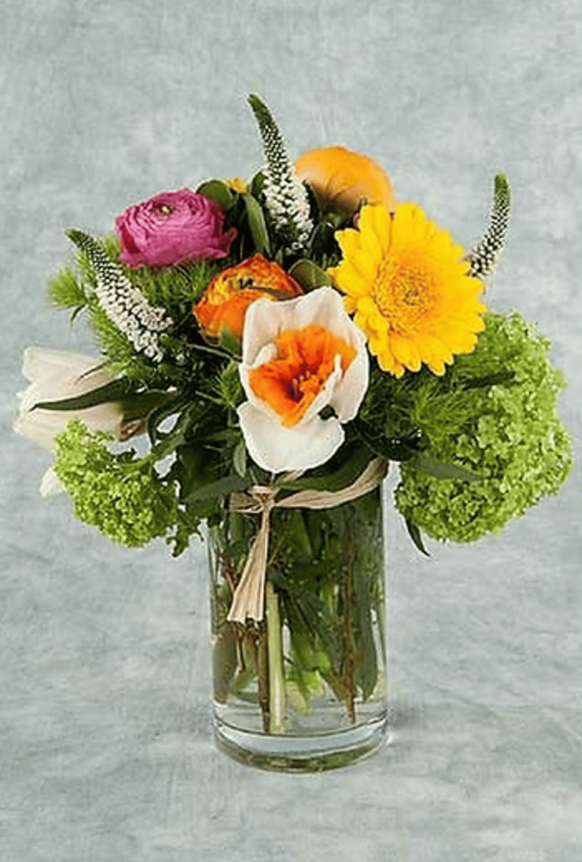 A beautiful selection of mixed bright colors. Flowers and vase subject to change due to availability and seasonality.