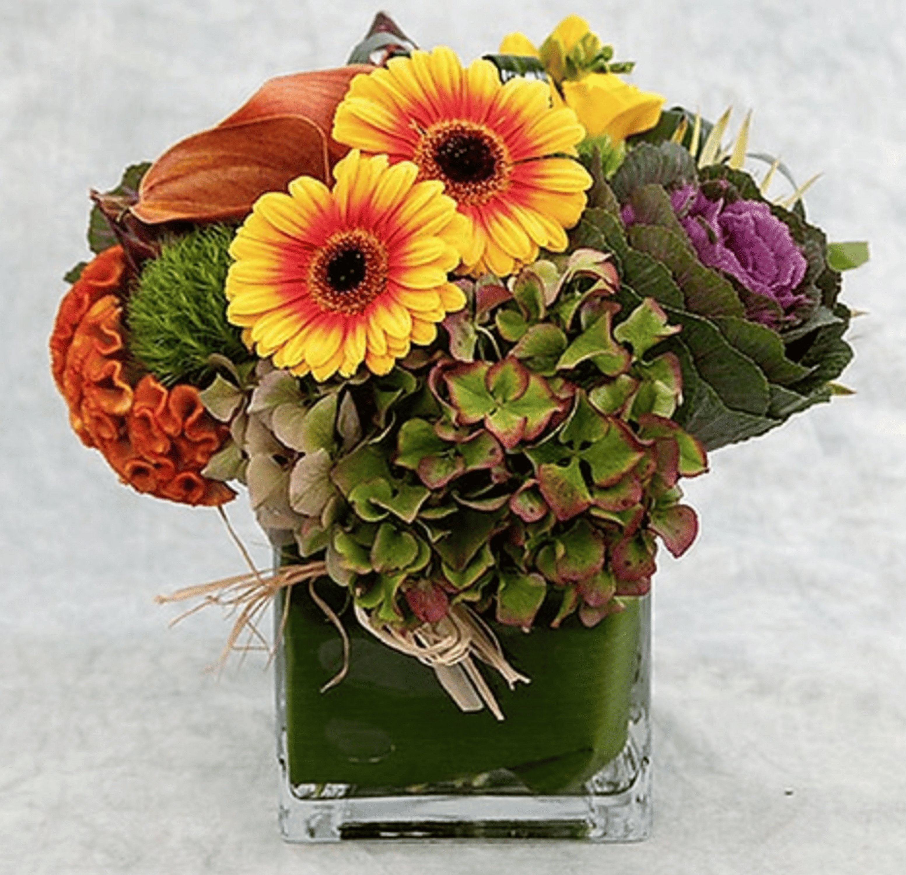 A fall mix of vibrant quality flowers to add a finishing touch to any room.