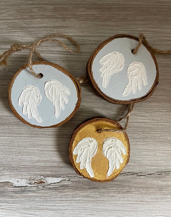Hand painted and one-of-a-kind. These keepsake ornaments make wonderful holiday gifts for your tree, though their significance extends beyond. They can serve as memorials for those who've lost loved ones, offering a reminder of their presence and the comforting thought of nearby angels. Versatile in display, they can be hung in any location.