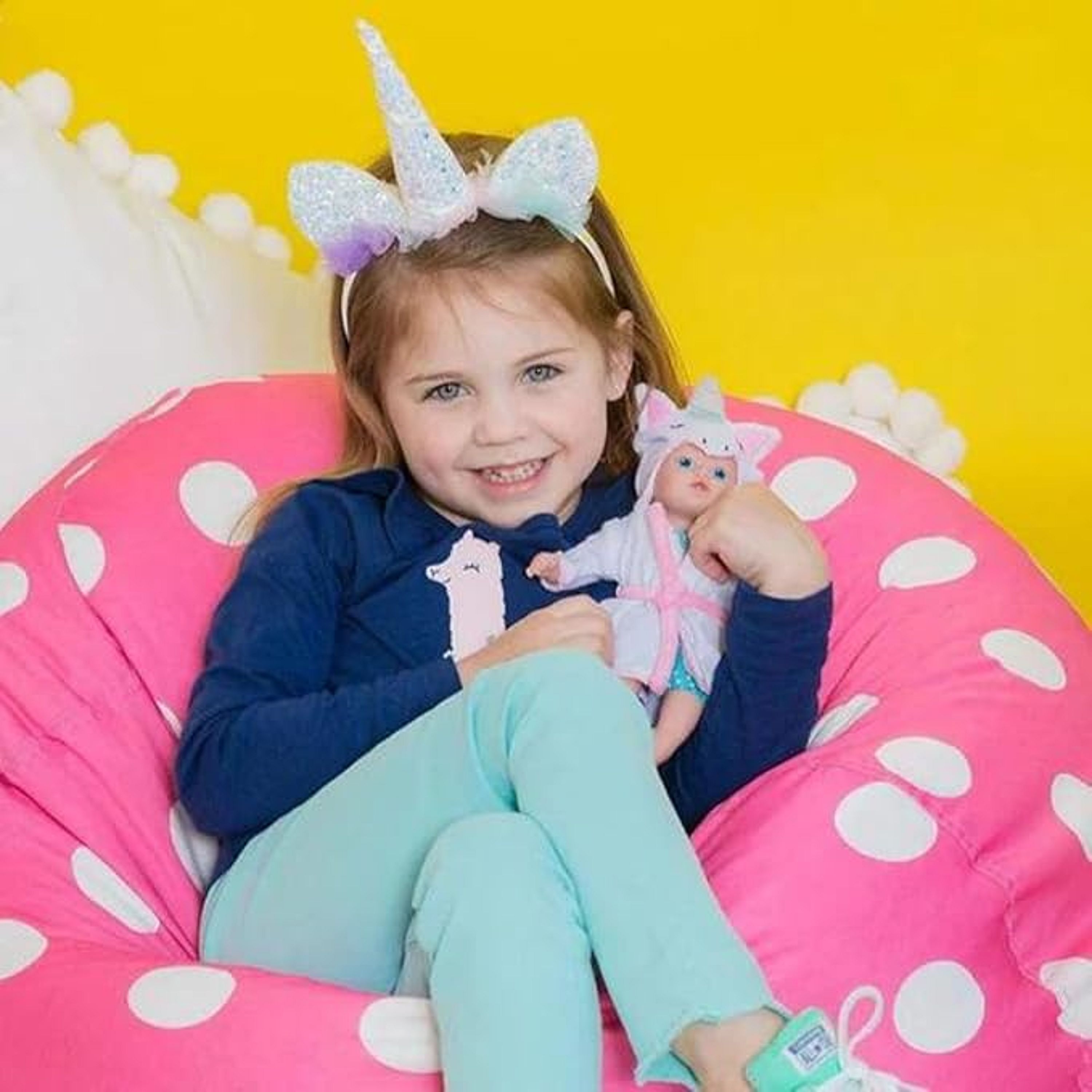 3-PIECE SET - This Adora baby doll and accessories set comes with one 8.5-inch baby doll, an attached blue polka-dot swimsuit, and an embroidered hooded bathrobe