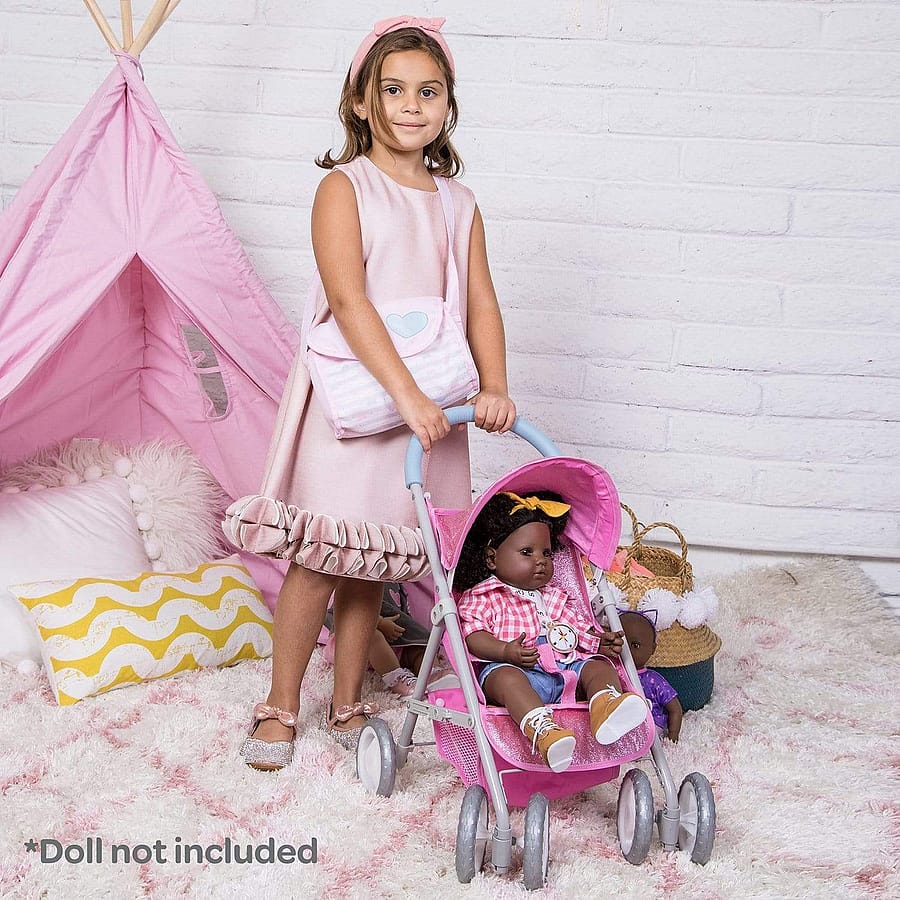 SPARKLY PINK FUN - Your little one will surely love our sparkly pink stroller design.