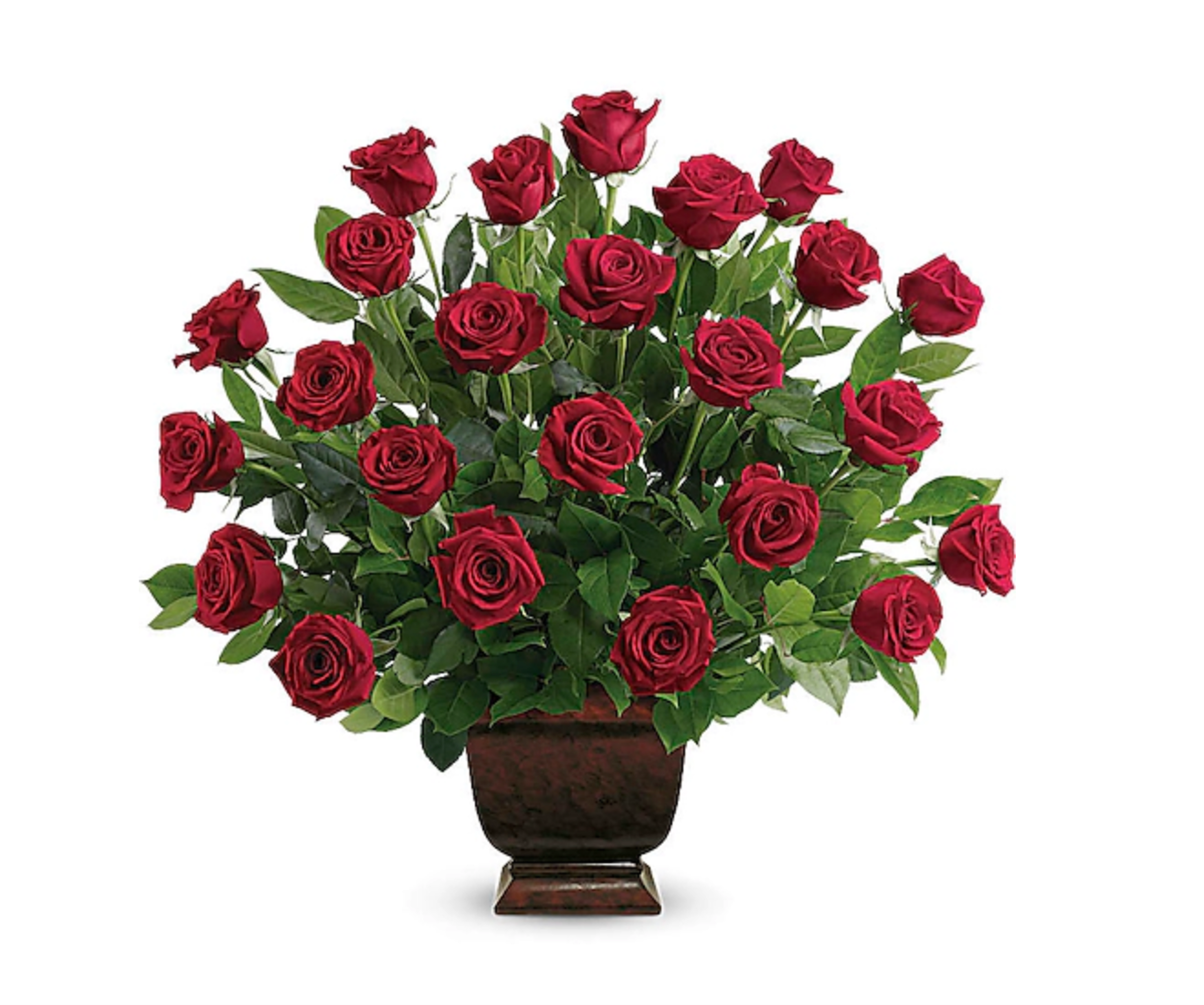 As true as the love symbolized by a red, red rose are the heartfelt memories and deep feelings embraced with this classic and elegant expression of tribute. Two dozen red roses, accented by salal, are presented in an exclusive Noble Heritage Urn.