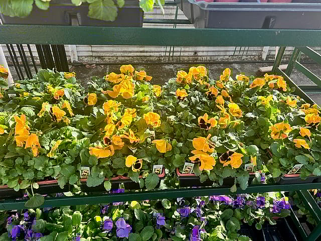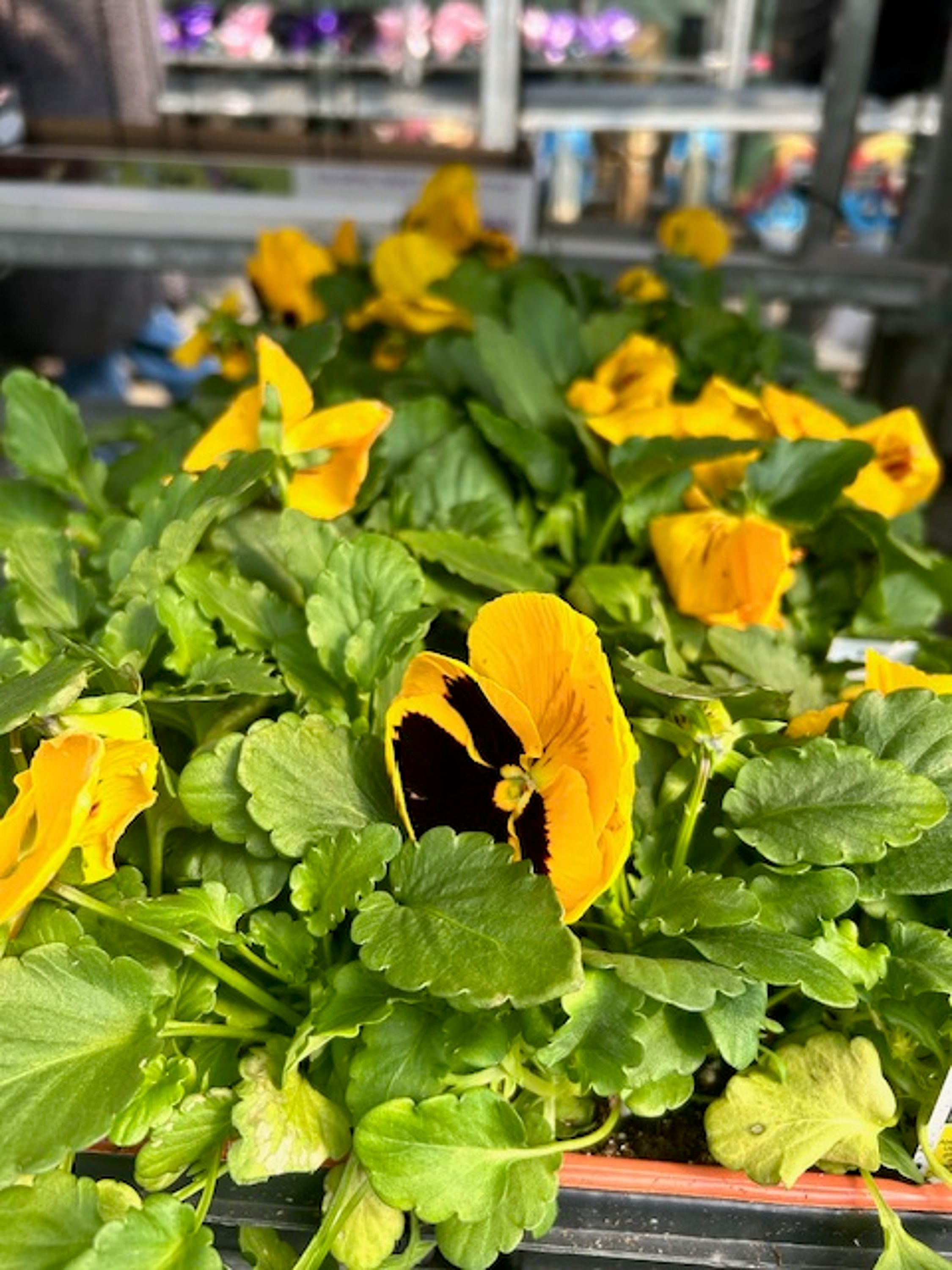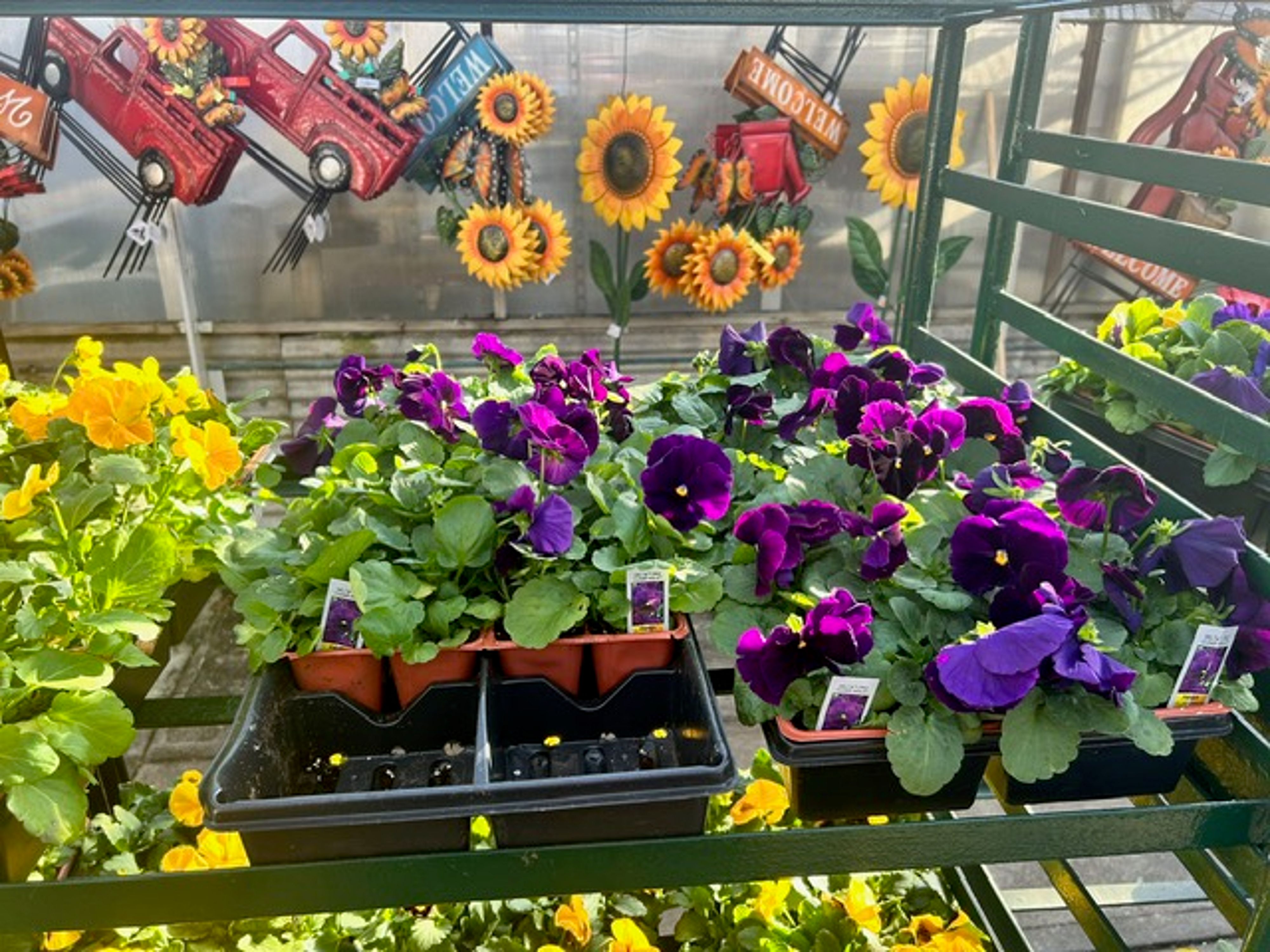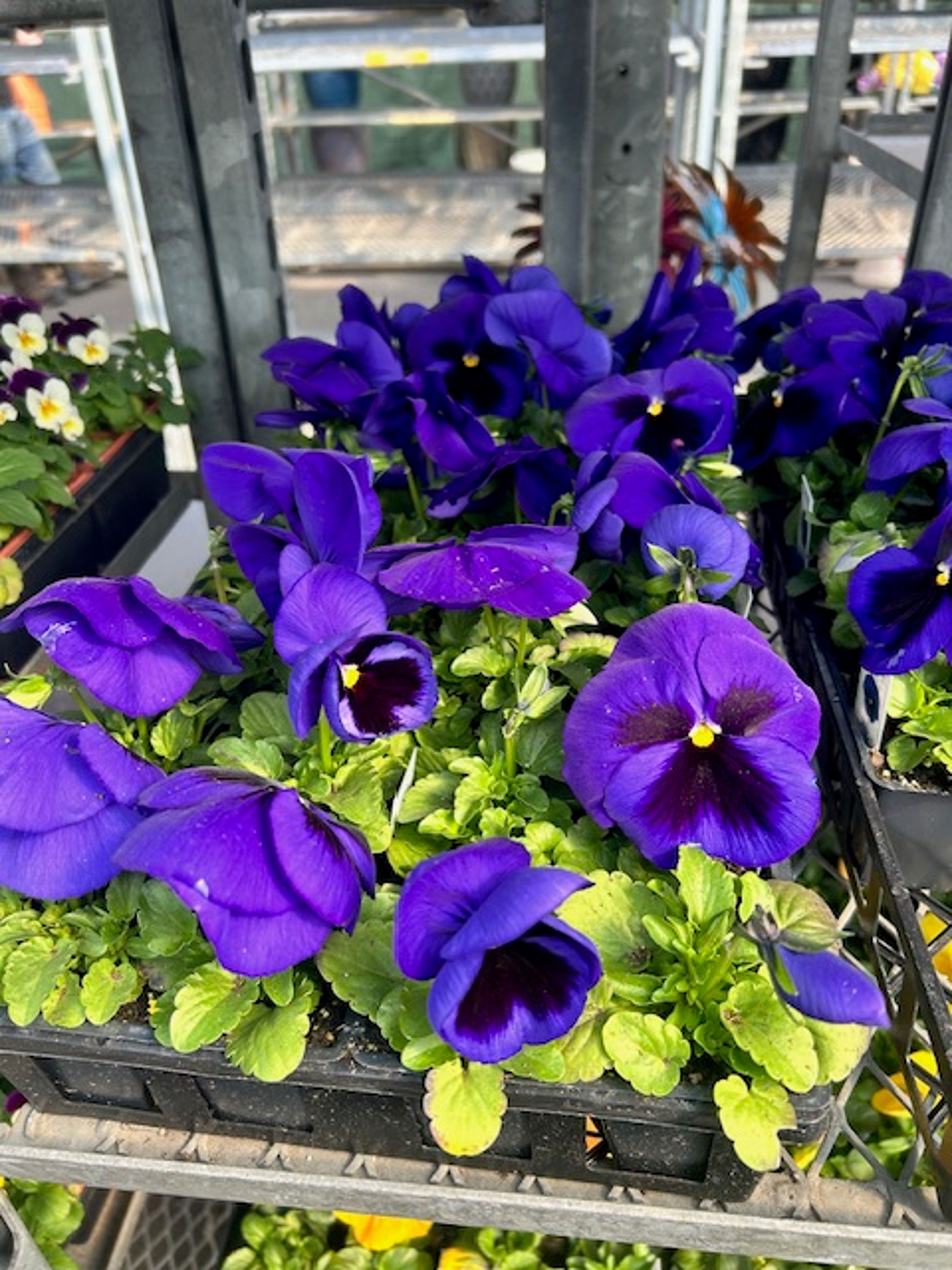 The pansy is a group of large-flowered hybrid plants cultivated as garden flowers. The pansy flower is two to three inches in diameter and has two slightly overlapping upper petals, two side petals, and a single bottom petal with a slight beard emanating from the flower's center. The plant may grow to nine inches in height, and prefers sun to varying degrees and well-draining soils. Product photos are for illustrative purposes only. Solid Colors subject to availability.