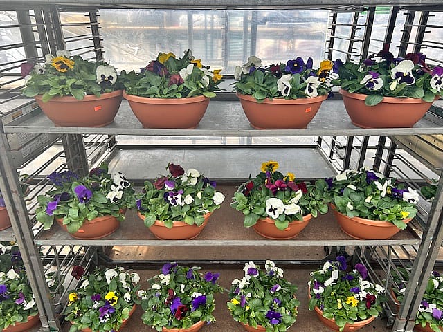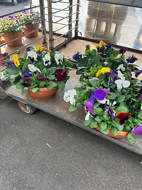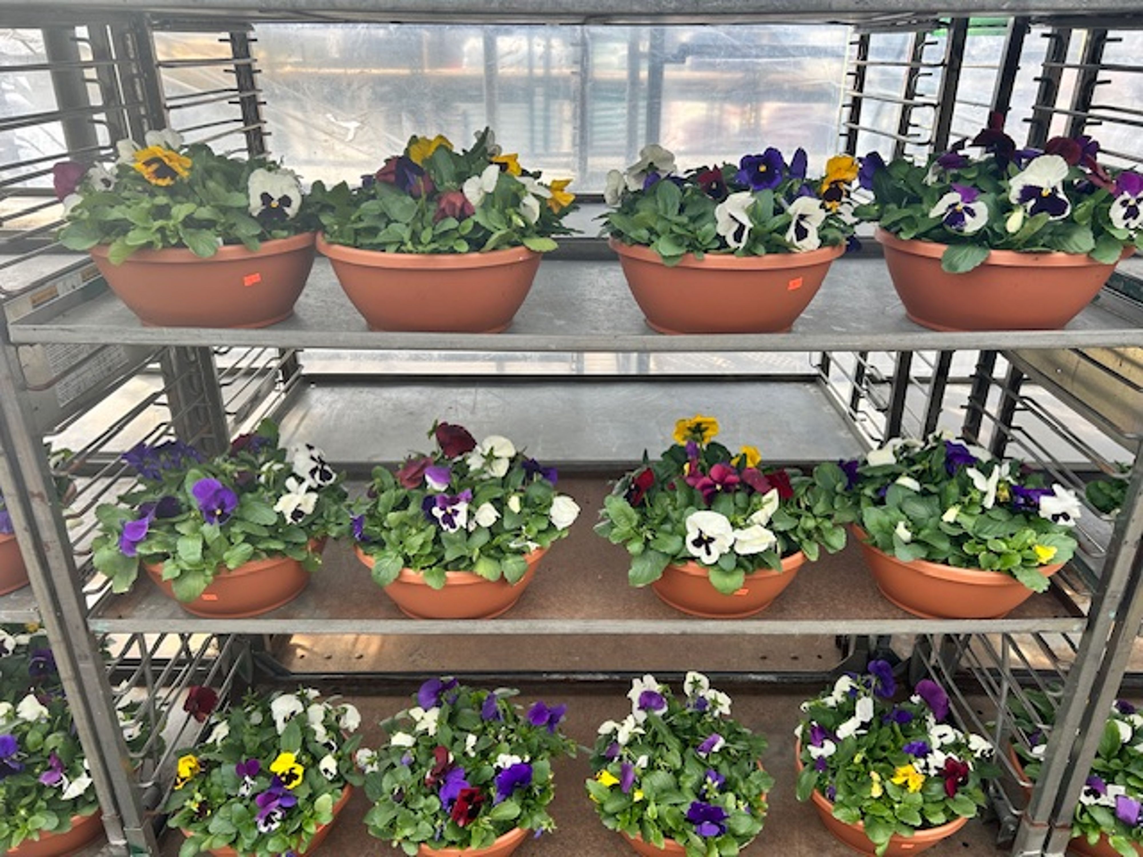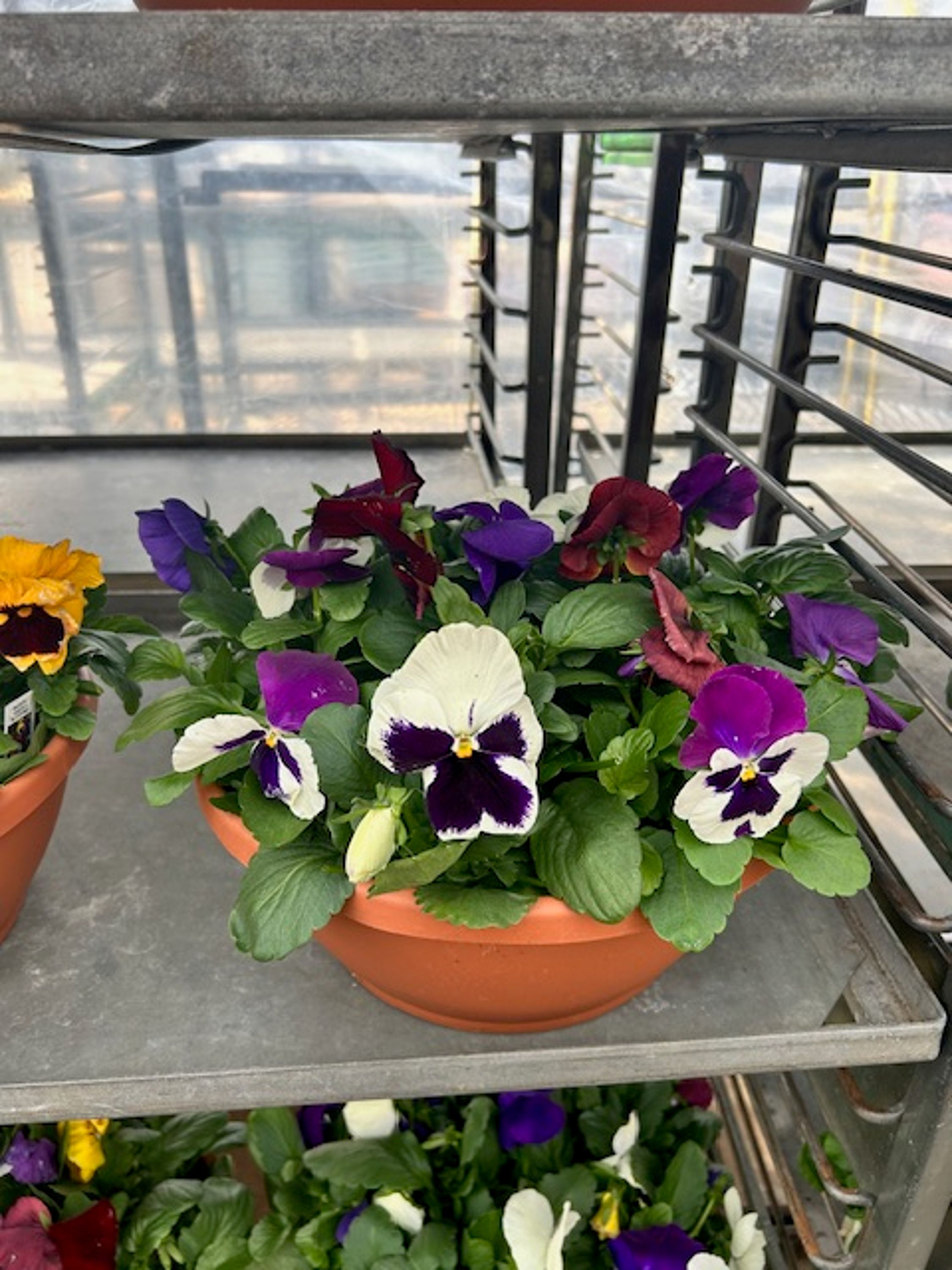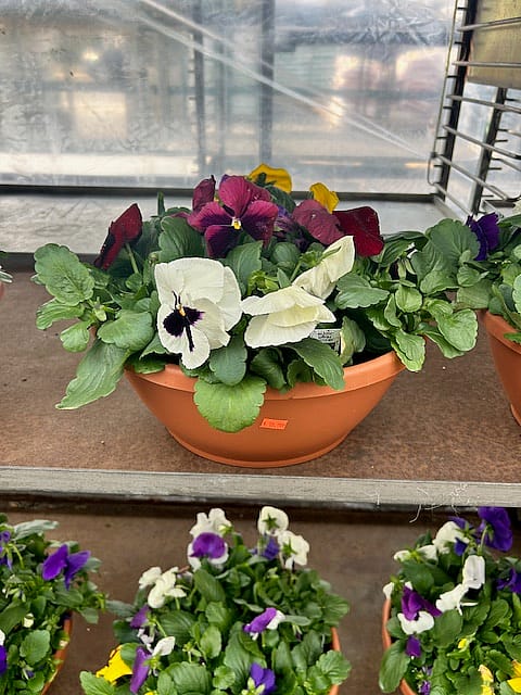 Pansies - 12 inch terra cotta colored bowl Colors may vary