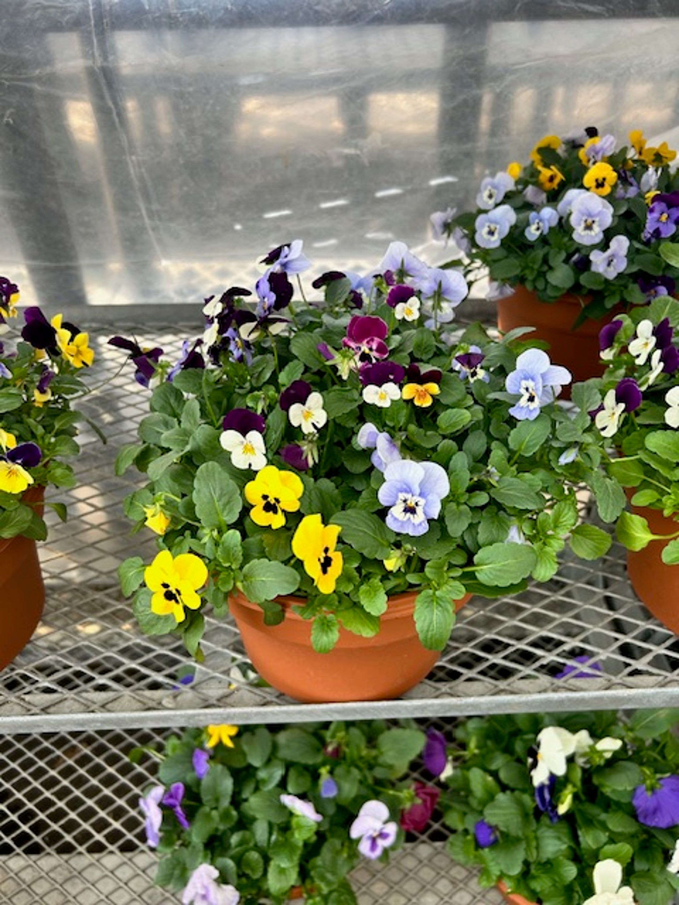 8 inch viola in terra cotta colored pots. Colors may vary!
