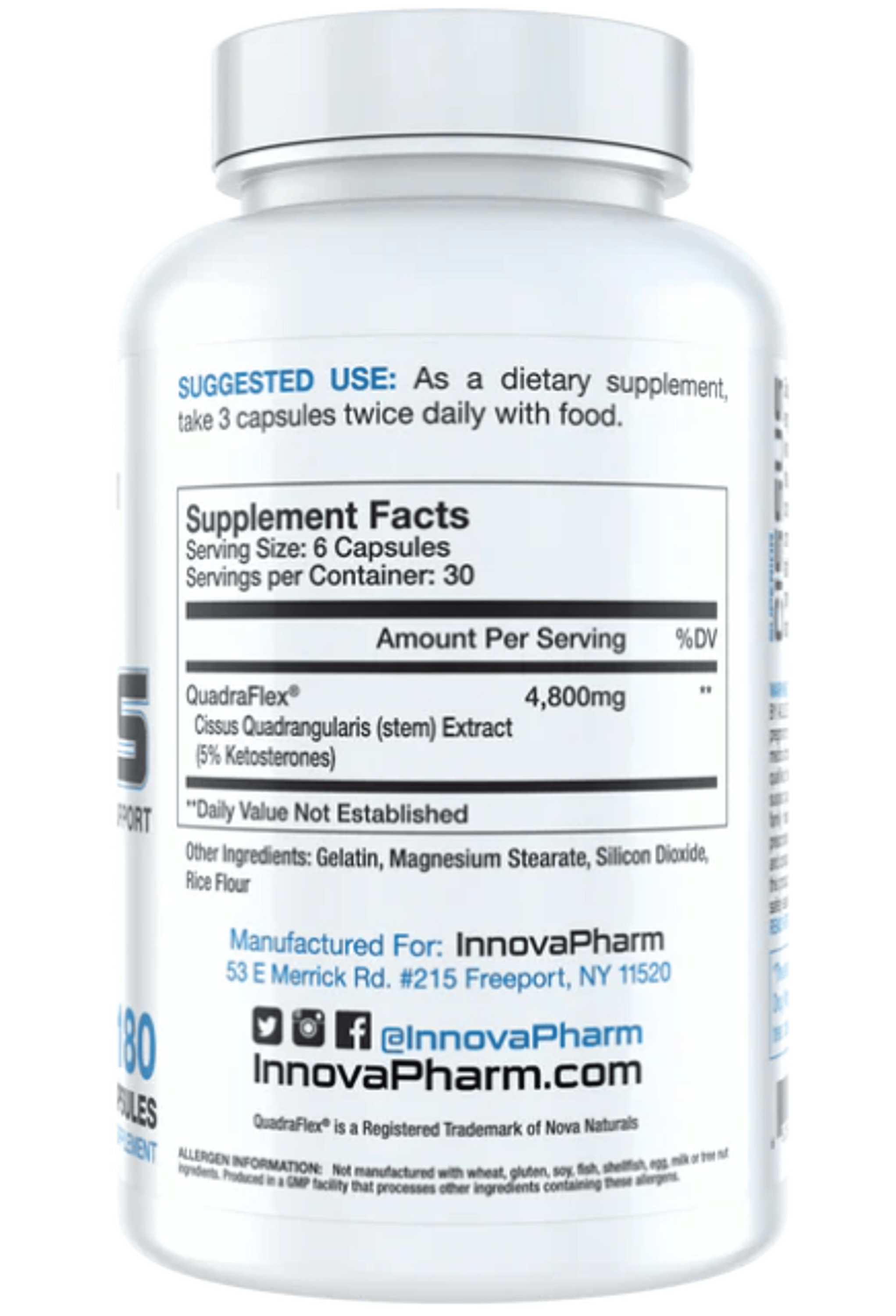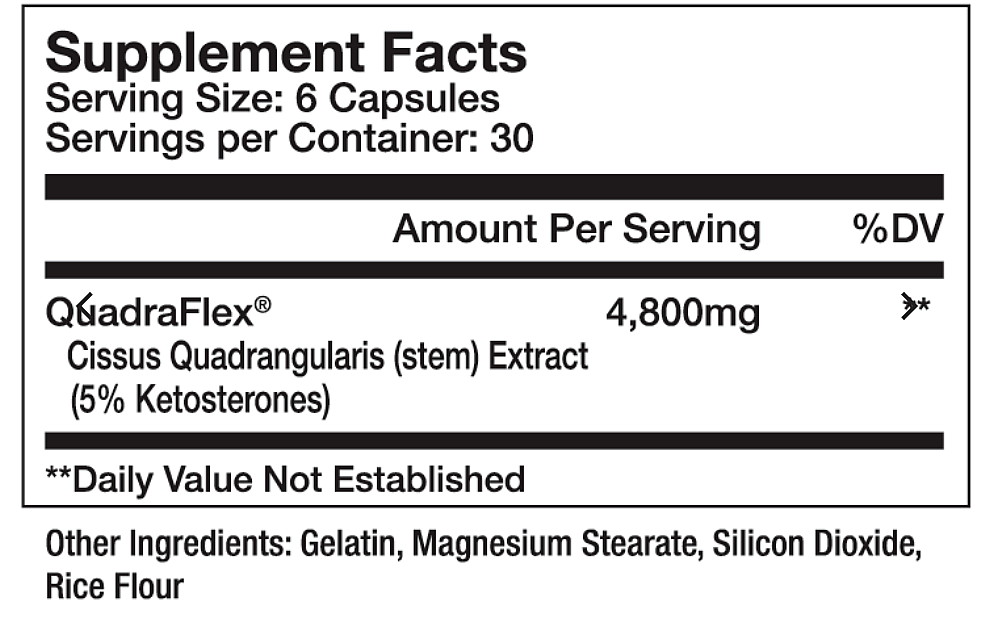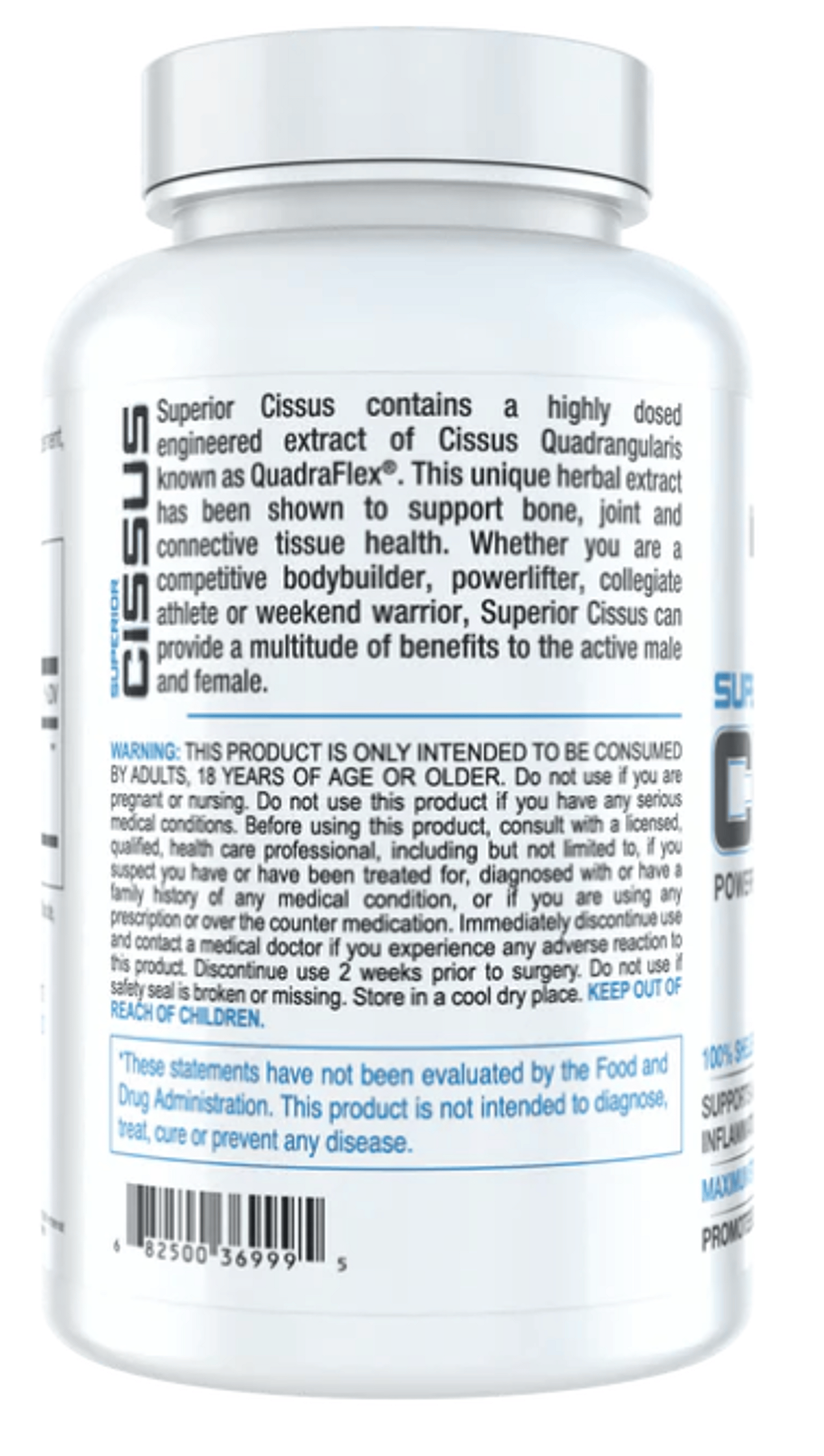 Superior Cissus contains a highly dosed engineered extract of Cissus Quadrangularis known as QuadraFlex®. This unique herbal extract has been shown to support bone, joint and connective tissue health. Whether you are a competitive bodybuilider, powerlifter, collegiate athlete or weekend warrior, Superior Cissus can provide a multitude of benefits to the active male and female.