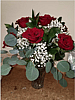 Dozen Red Rose's in a vase with baby breath