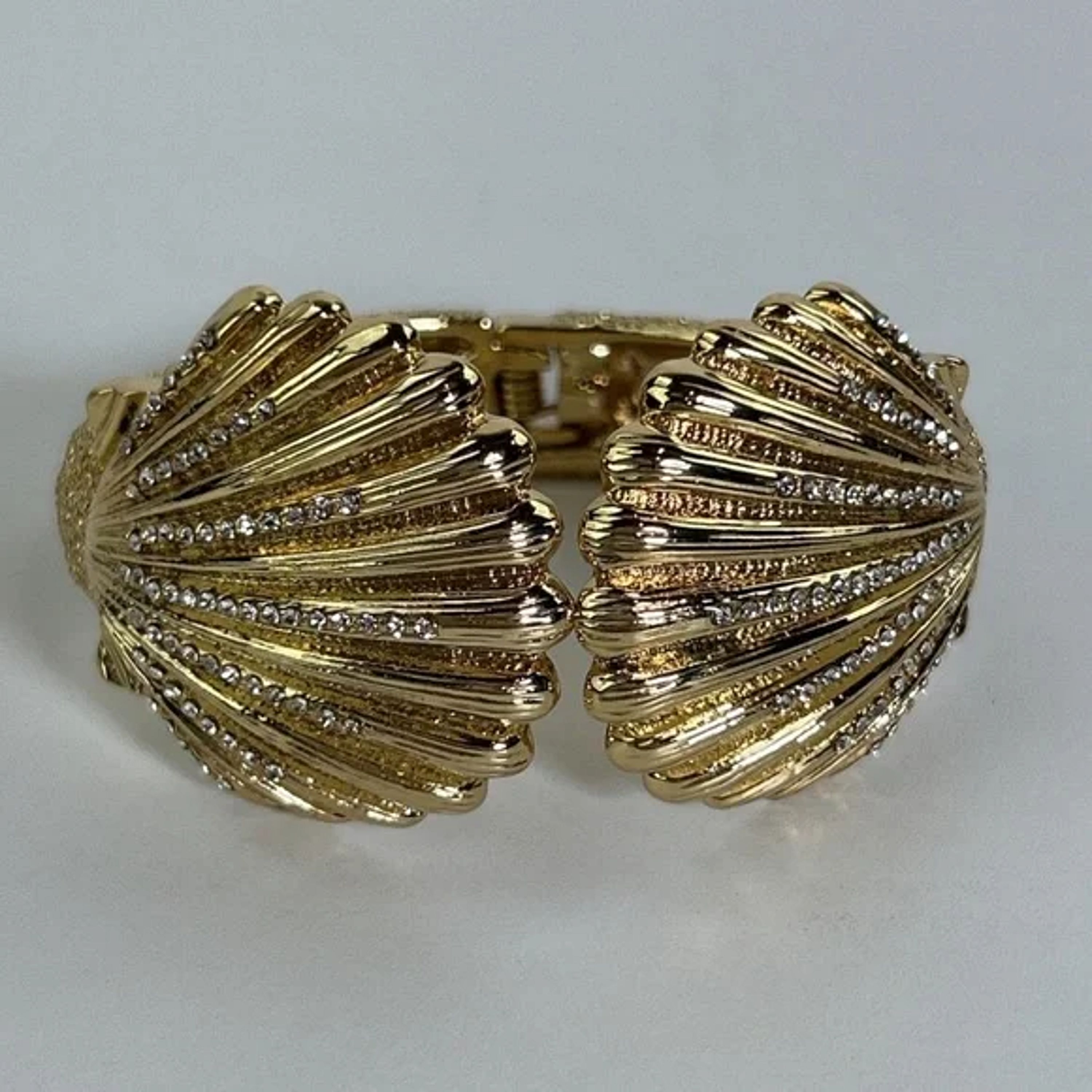 This exquisite bracelet from Lilly Pulitzer features a captivating shell-inspired design, crafted in a luxurious gold tone. The ribbed texture and polished finish add depth and elegance, making it a standout piece for any occasion.
