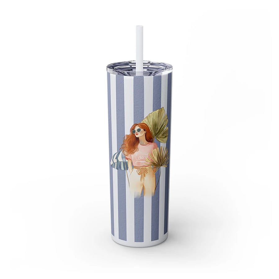 Introducing our stylish Skinny Tumbler with Straw, the perfect companion for your beverages on the go! With a sleek, tapered design, this versatile tumbler not only keeps your drinks at the ideal temperature for hours but also adds a vibrant splash of color to your day. Whether you're enjoying a refreshing iced tea at a beach picnic or sipping hot coffee at your home office, this tumbler is here to elevate your beverage experience. Ideal for ocean lovers and outdoor enthusiasts, it makes a thoughtful gift for friends and family. Use it for everyday hydration, during celebrations, or as a unique holiday gift. Perfect for summer gatherings, beach trips, and cozy nights in, this tumbler is an essential for anyone seeking both style and functionality! Product features - Double wall insulation keeps drinks hot for up to 12 hours and cold for up to 24 hours - Includes a clear plastic lid with a matching color straw for added convenience - Vibrant and crisp colors achieved with advanced printing techniques - Made from durable stainless steel and BPA-free plastic - Available in a matte or glossy powder-coated finish; hand wash only Care instructions - Hand wash only *Please leave name in notes for personalization- if not the item will be printed as is.