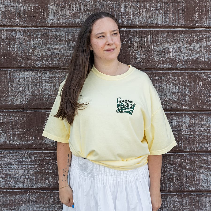 Made from soft, breathable cotton, this comfy tee features the Crossroads Farm logo and is perfect for farmers' market mornings, volunteer days, or everyday wear.