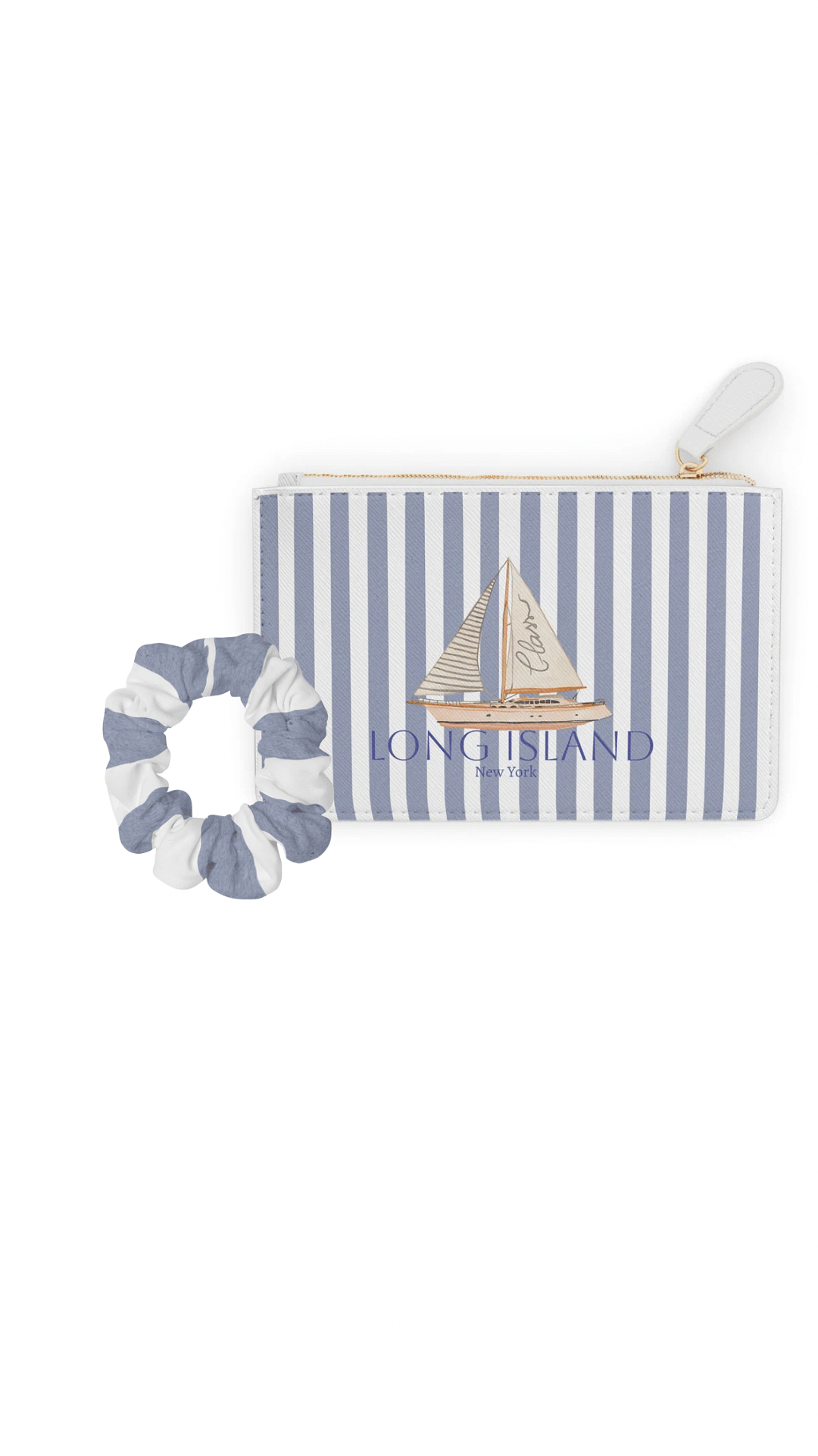 The Sailaway bundle is your perfect pre-weekend pick-me-up: a nautical-inspired mini clutch for your essentials and a soft, statement scrunchie to tie it all together—literally. Whether you’re sailing into the weekend or just dreaming of your next getaway, this duo brings effortless style and shoreline serenity to your day.