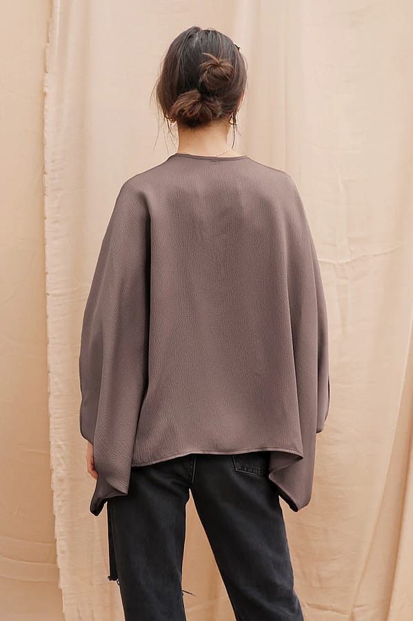 Hammered Satin V-Neck Caftan Top - Mushroom
