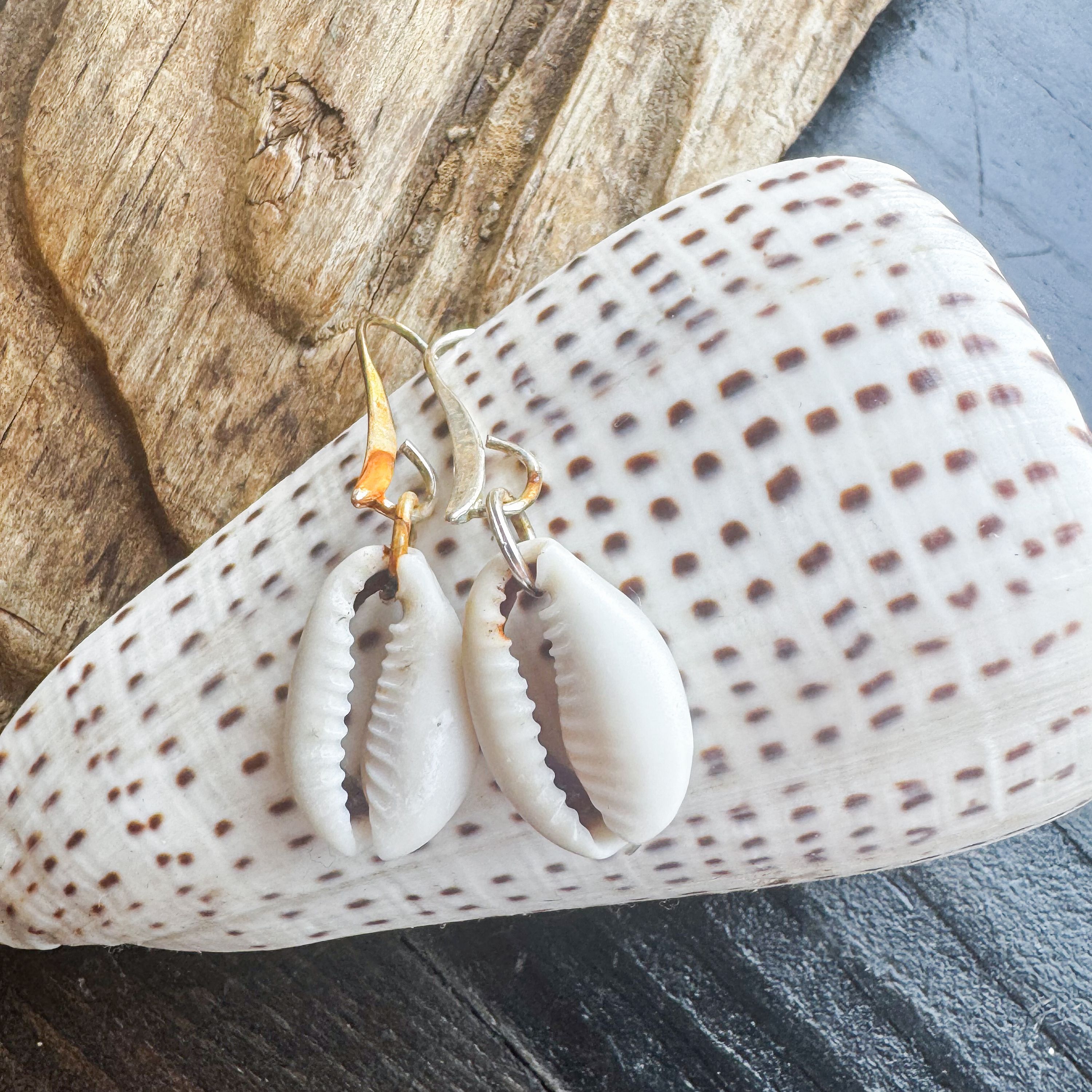 Tap into seaside style and timeless symbolism with these handcrafted Cowrie Shell Dangle Earrings. Made with natural cowrie shells—believed to bring good luck and prosperity—each pair is finished with silver-plated dangle posts for a polished yet beachy look. Lightweight and full of coastal charm, they’re perfect for ocean lovers, sun chasers, and free spirits alike.