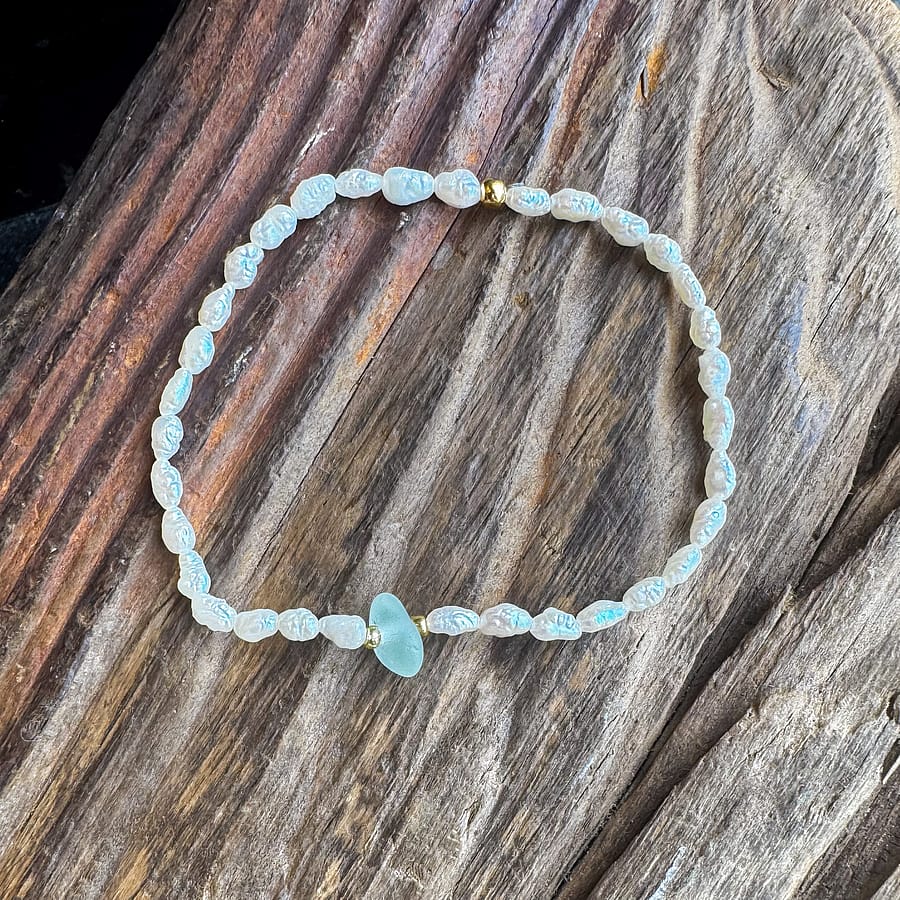 Hand-strung with care, this bracelet captures the calming beauty of the shore in every detail.