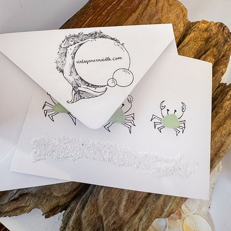 Crab Trio Beach Card with Seaglass
