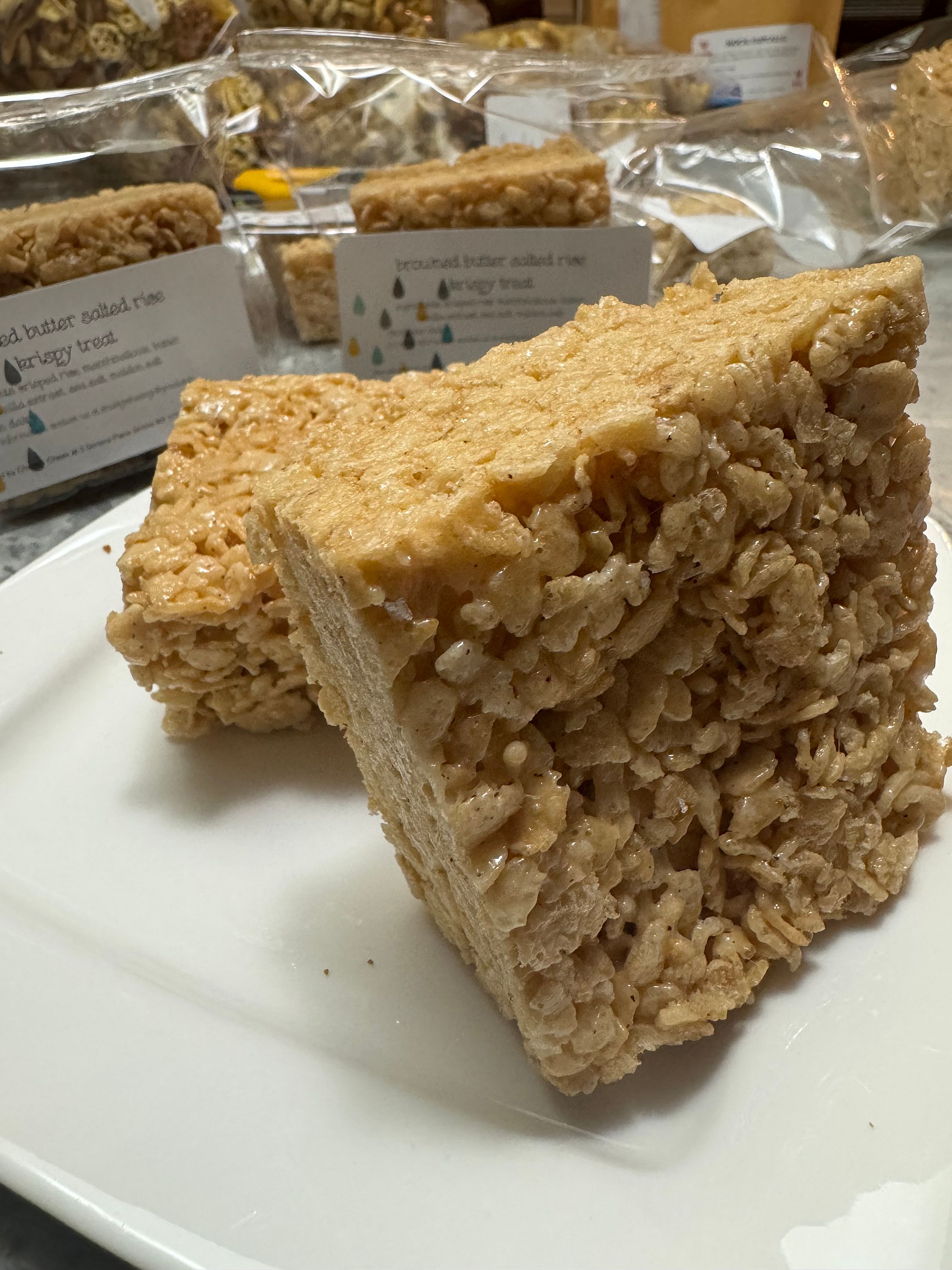 Classic rice crispy treat made with rich salted brown butter, we promise...you'll be wowed.