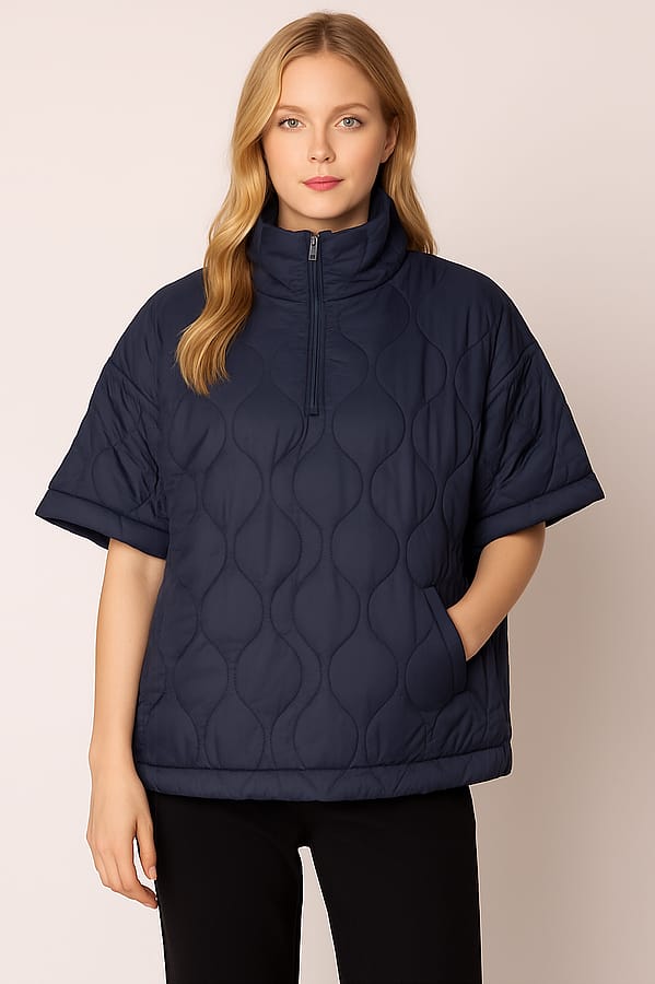 Stay warm and in style with this unique oversized poncho that's designed to keep you cozy in chilly weather. Absolutely stunning design for the season - this stylish and versatile jacket features a convenient half front zipper, with front pockets to keep your essentials close at hand. Available in burgundy and black, this quilted half zip poncho combines fashion and function, making it a must-have addition to your wardrobe. It has a loose and roomy design so you can wear it comfortably with a sweater underneath.