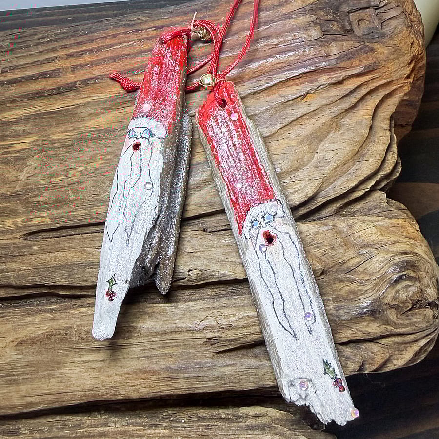 • Hand-painted Santa design on natural driftwood