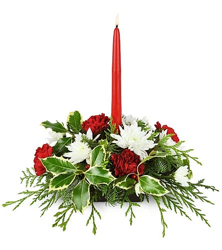 Nothing says “Happy Holidays!” better than this festive red and white centerpiece. Choose it as the perfect finishing touch for your own holiday table, or send it to a loved one who can’t get enough of this joyful season.