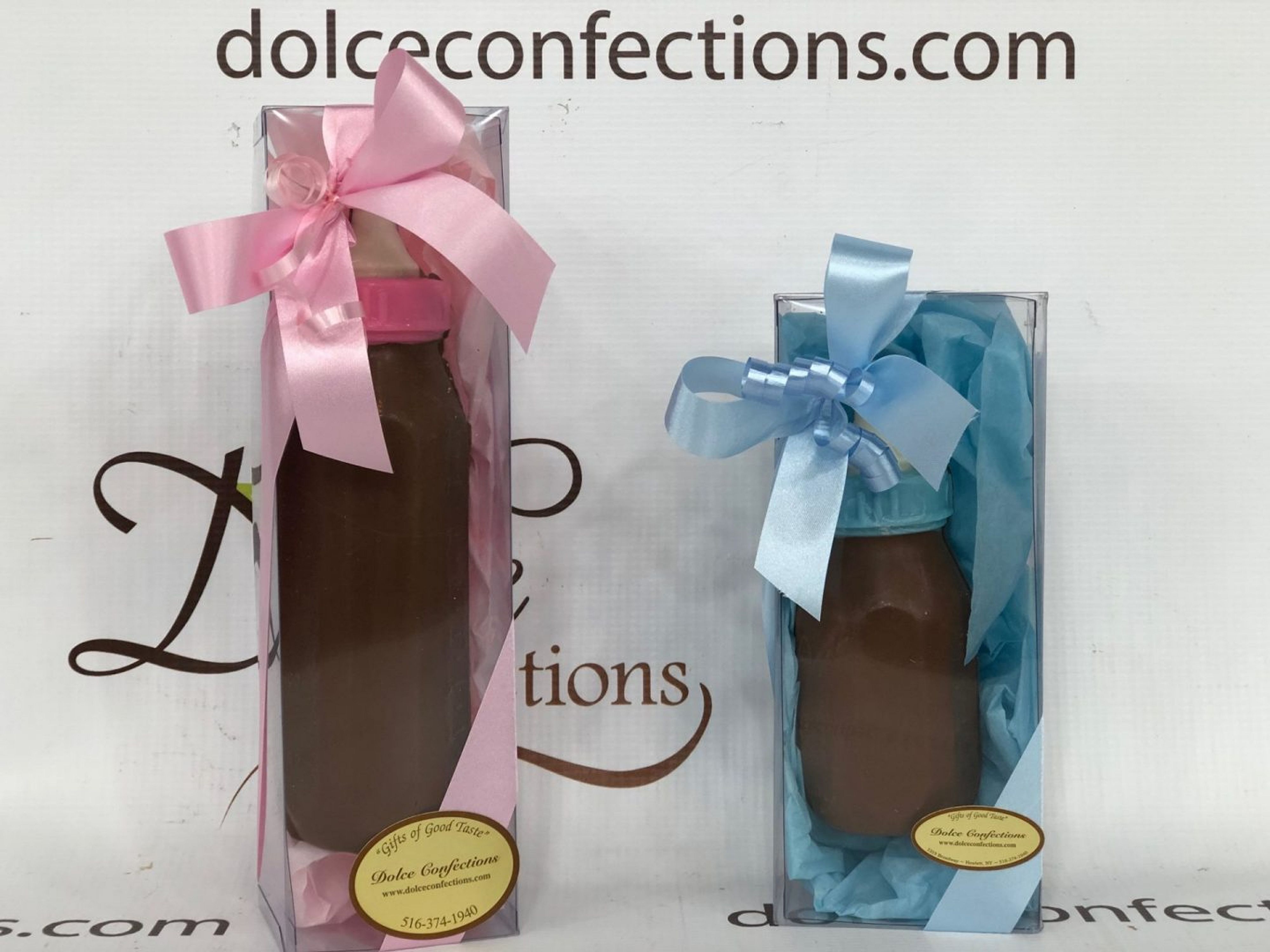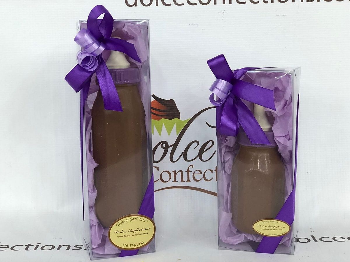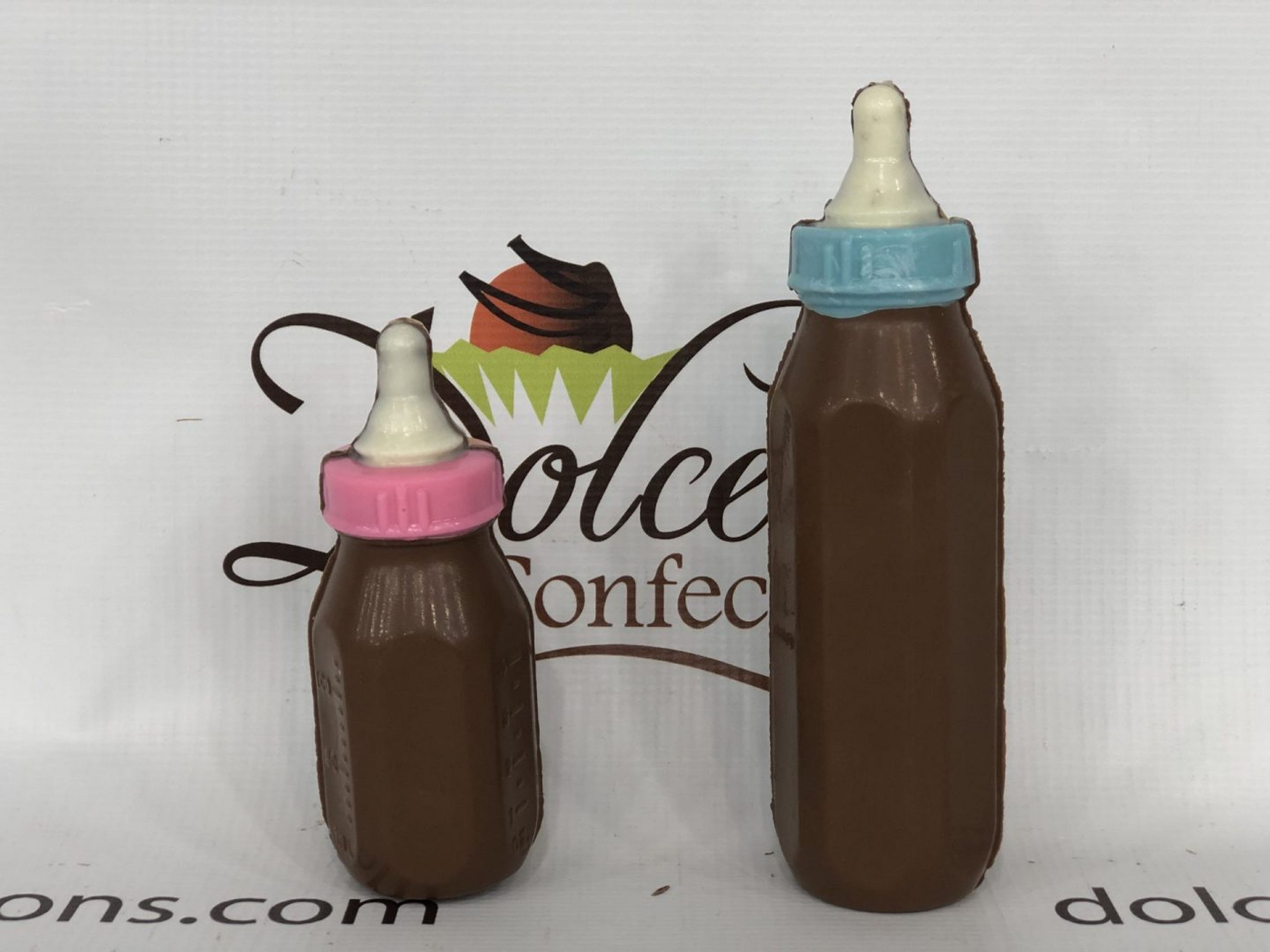 Three-dimensional chocolate baby bottle. Available in small (2″ x 5 1/2″) or large (2″ x 7 3/4″) sizes.