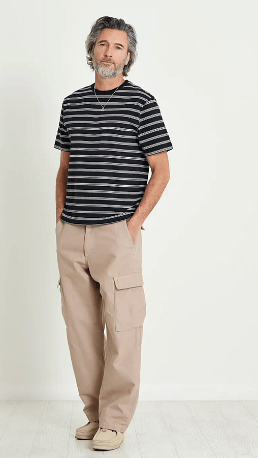 Made from a heavyweight 100% organic cotton in Navy/Ecru Stripe. Wear yours with our Kurt Trousers or Shorts.