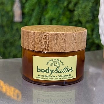 Luxurious body butter available in a variety of irresistible scents from Sugared Beauty Bar. Rich, nourishing, and ultra-hydrating, it leaves skin soft, smooth, and beautifully scented.