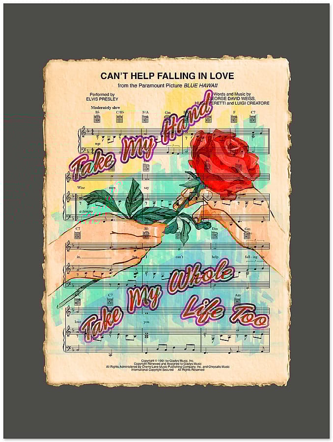 Original creative design layered over authentic sheet music, capturing the essence of music and art. Perfect for music lovers and avid fans of Elvis Presley.
