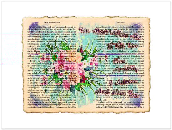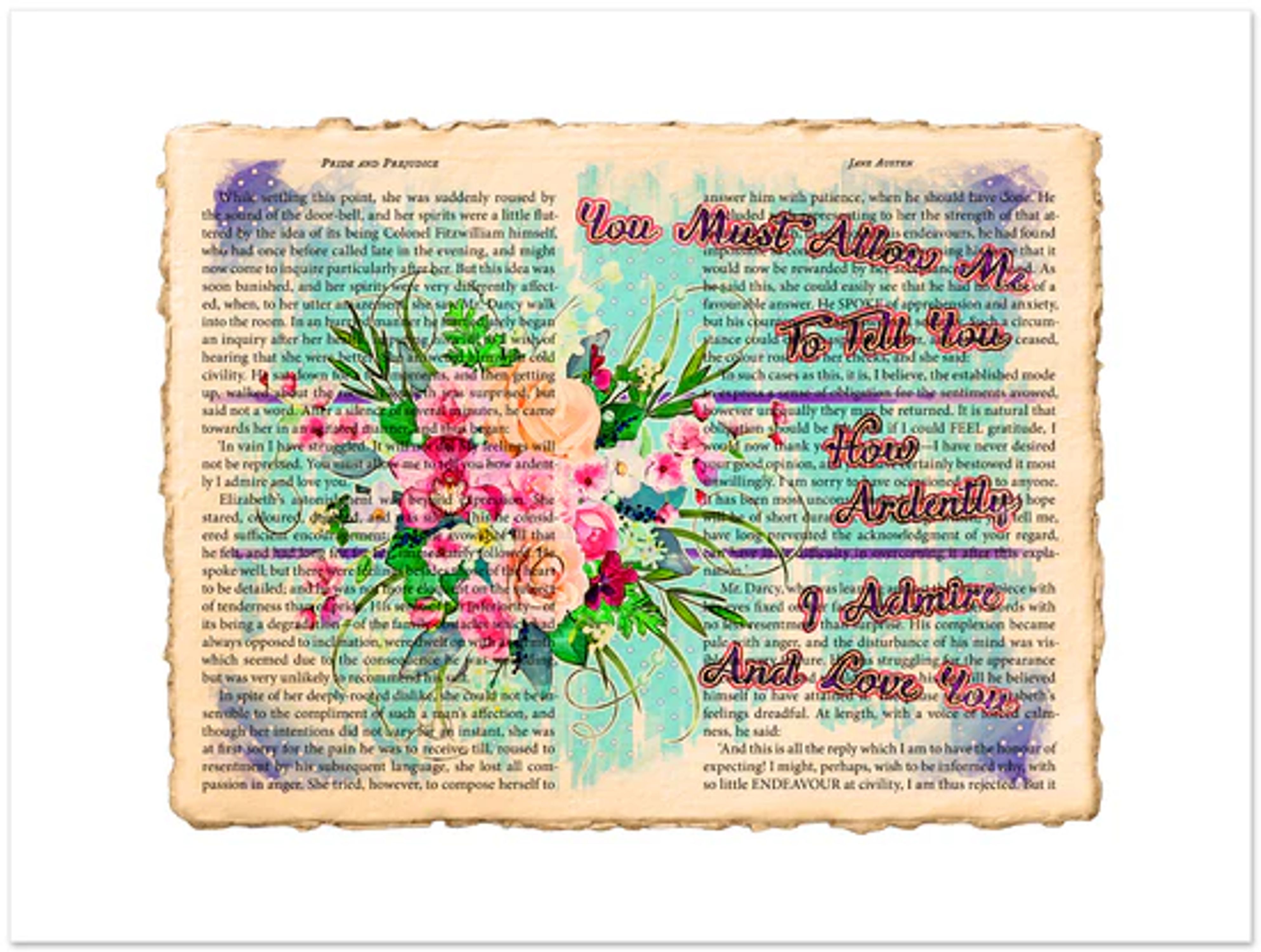 Original creative design layered over authentic book pages, capturing the essence of literature and art. Perfect for book lovers and avid fans of Pride and Prejudice by Jane Austen.