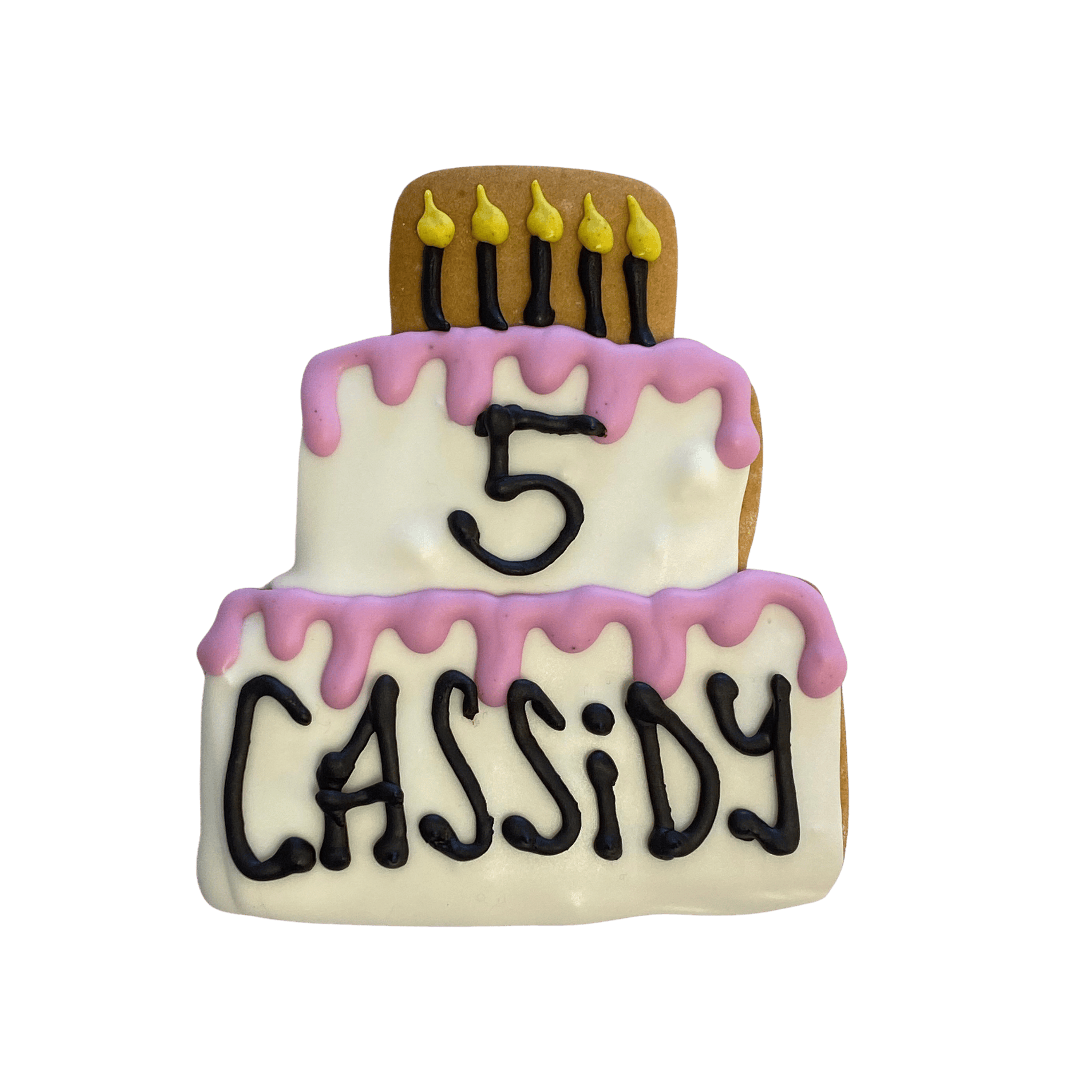 Pawty Cake Cookie can be personalized with your dog's name and age. Color of drizzle will be random.