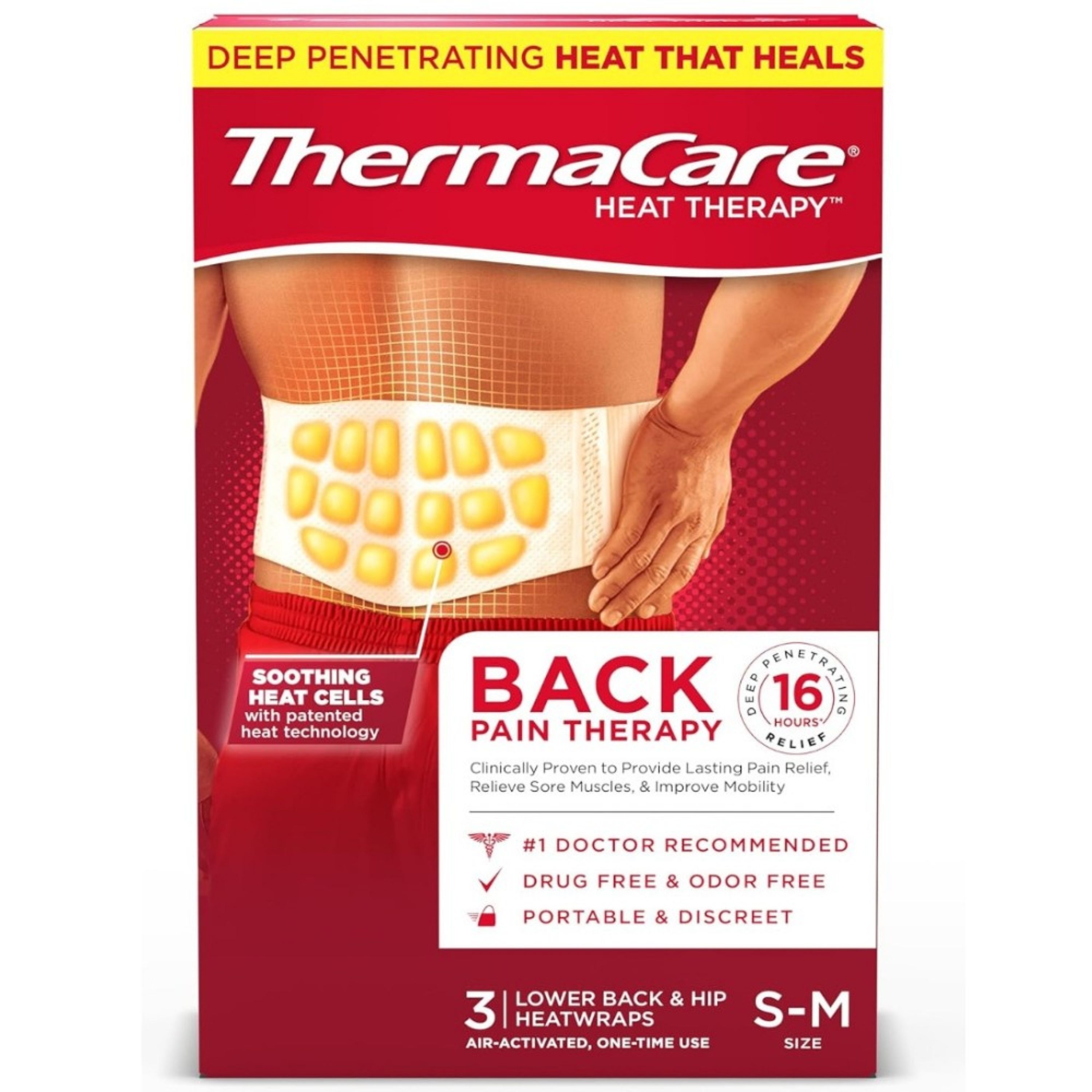 Soothe back and hip discomfort with long-lasting, targeted relief using the ThermaCare Back & Hip HeatWrap – S/M.