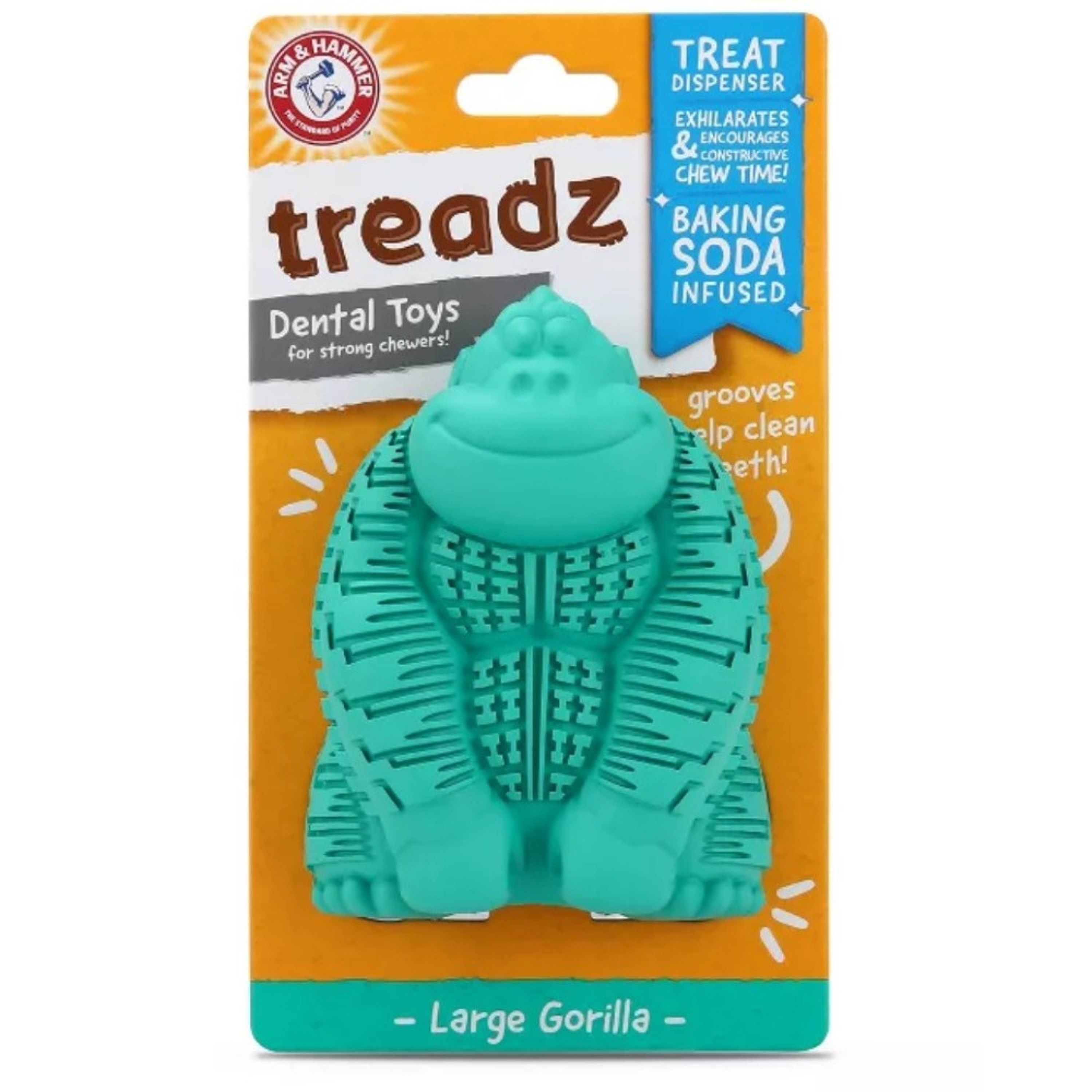 Arm & Hammer Super Treadz Gorilla Dog Toy is designed to provide long-lasting chewing fun while supporting your dog’s dental health. Made with durable materials and textured surfaces, this gorilla-shaped toy helps clean teeth and massage gums as your dog chews.