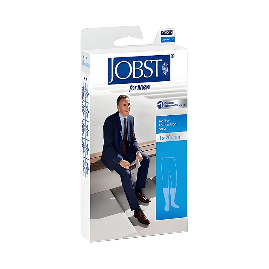 Jobst Knee High Black Socks in Large deliver mild graduated compression (15-20 mmHg) designed to gently support circulation, helping reduce leg fatigue and minor swelling during daily activities. The knee-high length extends from ankle to just below the knee, fitting larger calf circumferences comfortably. Crafted from a breathable, moisture-wicking knit, these socks keep legs cool and dry through prolonged wear. Reinforced heel and toe zones enhance durability and resist runs, while a comfortable non-binding cuff holds the sock securely in place without digging in or rolling down. The sleek black finish blends discreetly under dress pants, casual trousers, or workout gear. Easy-care machine washing (gentle cycle) and flat air drying preserve compression performance and fabric integrity. Trust Jobst for dependable, everyday leg support in a refined knee-high design.