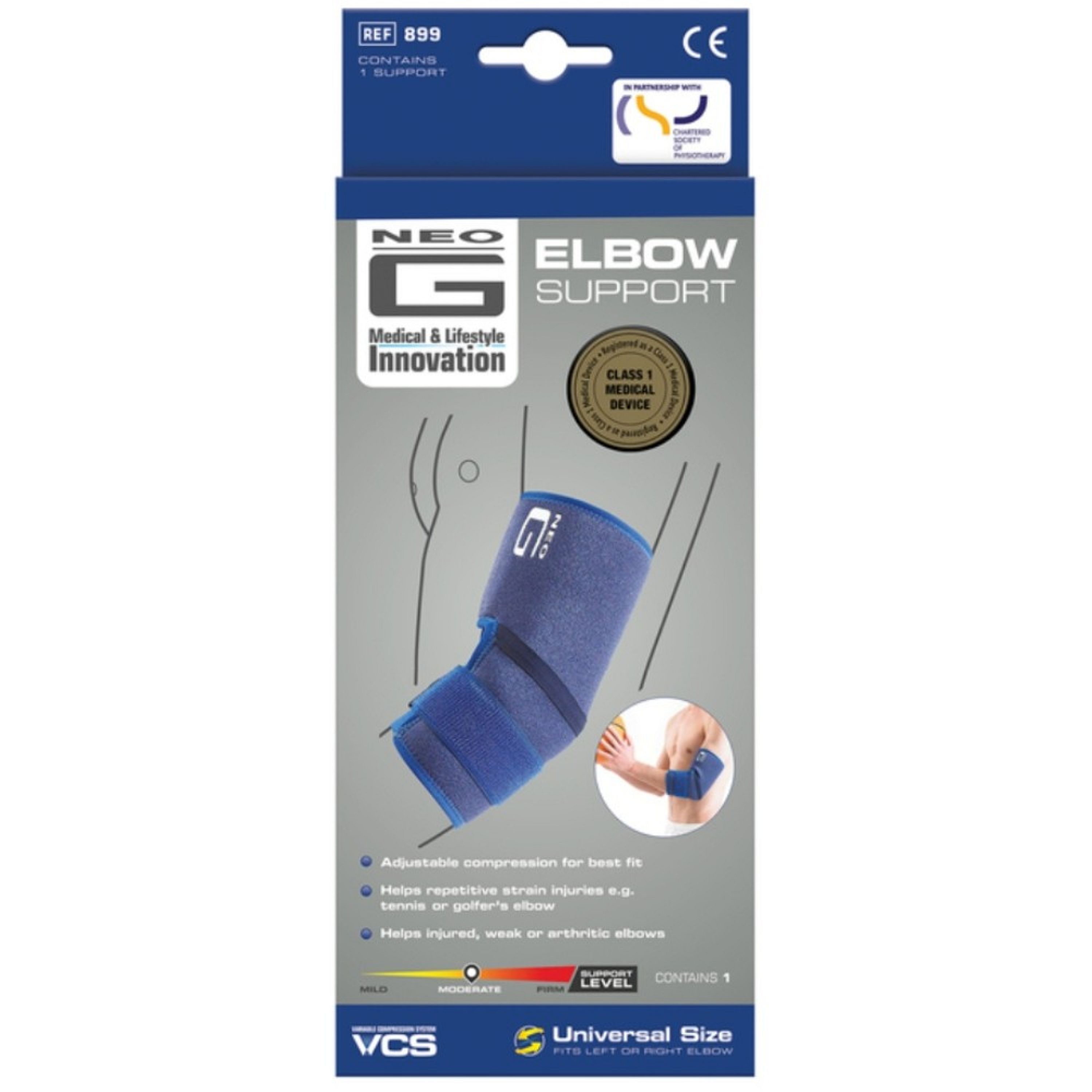 The Neo G Elbow Support is designed to help provide compression and stability to the elbow during everyday activities, work, or sports. It helps support the joint and surrounding muscles, which may help reduce discomfort caused by overuse, strains, or conditions such as tennis elbow. The adjustable design allows you to customize the level of compression for a comfortable and secure fit. Made with supportive materials, the brace helps keep the elbow stable while still allowing natural movement.
