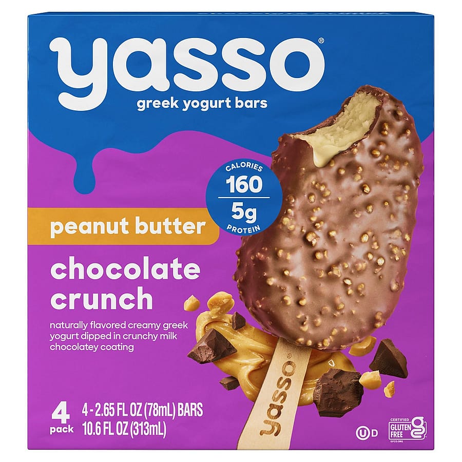 A 4‑pack of frozen Greek yogurt bars that blend creamy peanut butter‑flavored Greek yogurt with a crunchy chocolate‑coated shell studded with quinoa crisps. These bars offer a satisfying combination of rich, nutty peanut butter and textured crunch while remaining lighter than traditional ice cream, with about 5 g of protein and roughly 160 calories per bar. They’re naturally flavored and made with real Greek yogurt, making them a refreshing treat straight from the freezer that balances indulgence with nutritional value.