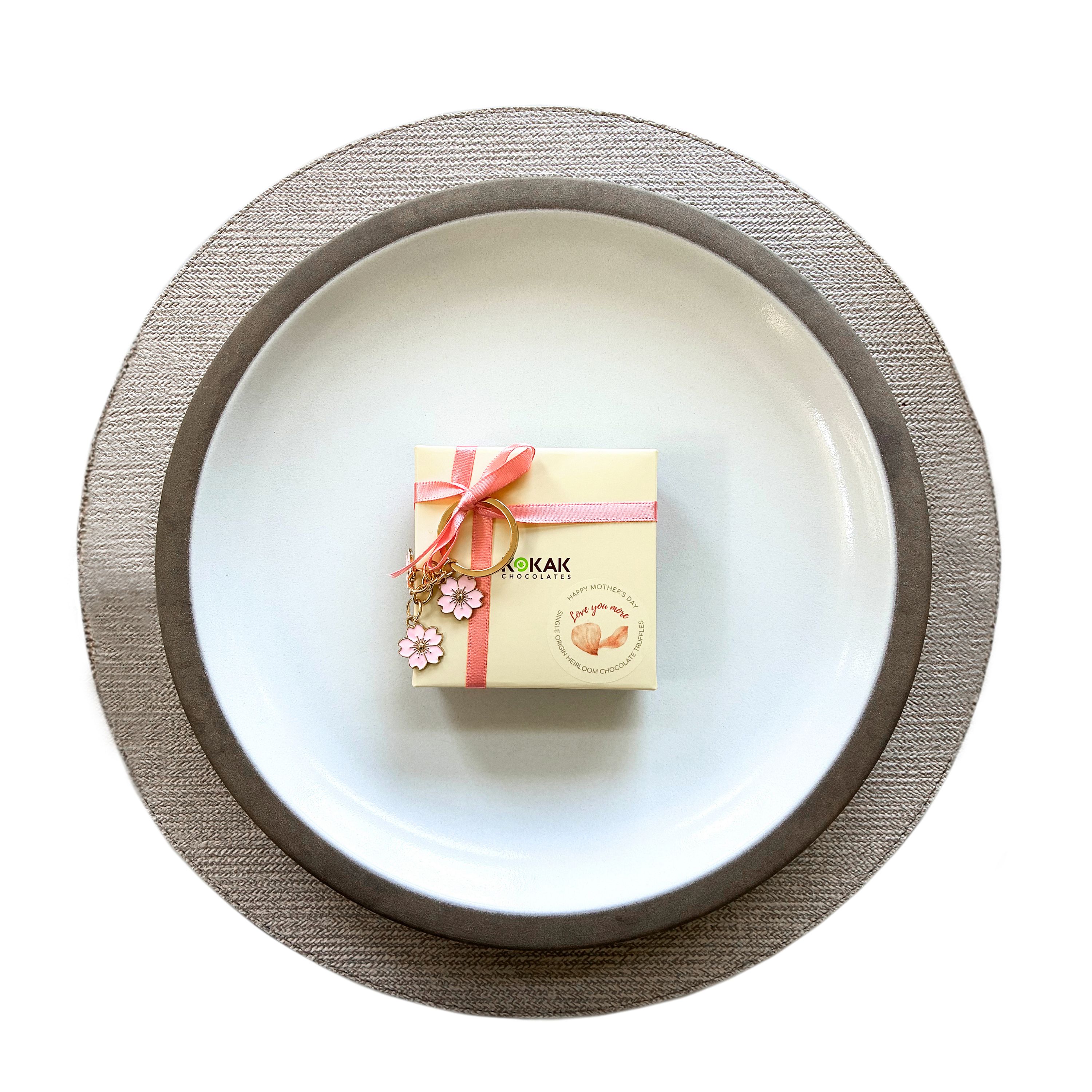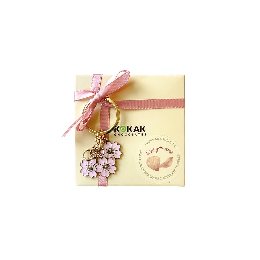 Introducing ✨ Love You More Assorted Chocolate Mother’s Day Collection ✨—embellished with a beautiful sakura flower set keychain, a heartfelt expression of gratitude to honor the care, strength, and love she gives every day. Made with heirloom, single-origin dark chocolate and inspired by Filipino and California flavors, each piece is a sweet way to say thank you.