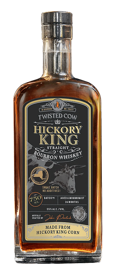 Made from Hickory King Corn, Rye, Crystal Barley and Chocolate Rye Malt, Twisted Cow distinguishes its whiskeys with unique and expressive small batch mash-bills. Hickory King Corn does not impart high sweetness and the burn associated with most bourbon. This bourbon is beautiful balance of corn & rye, with specialty malts that drive nougaty, carmely flavors that linger.