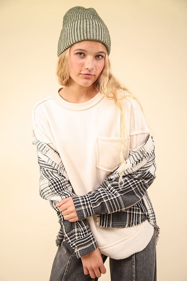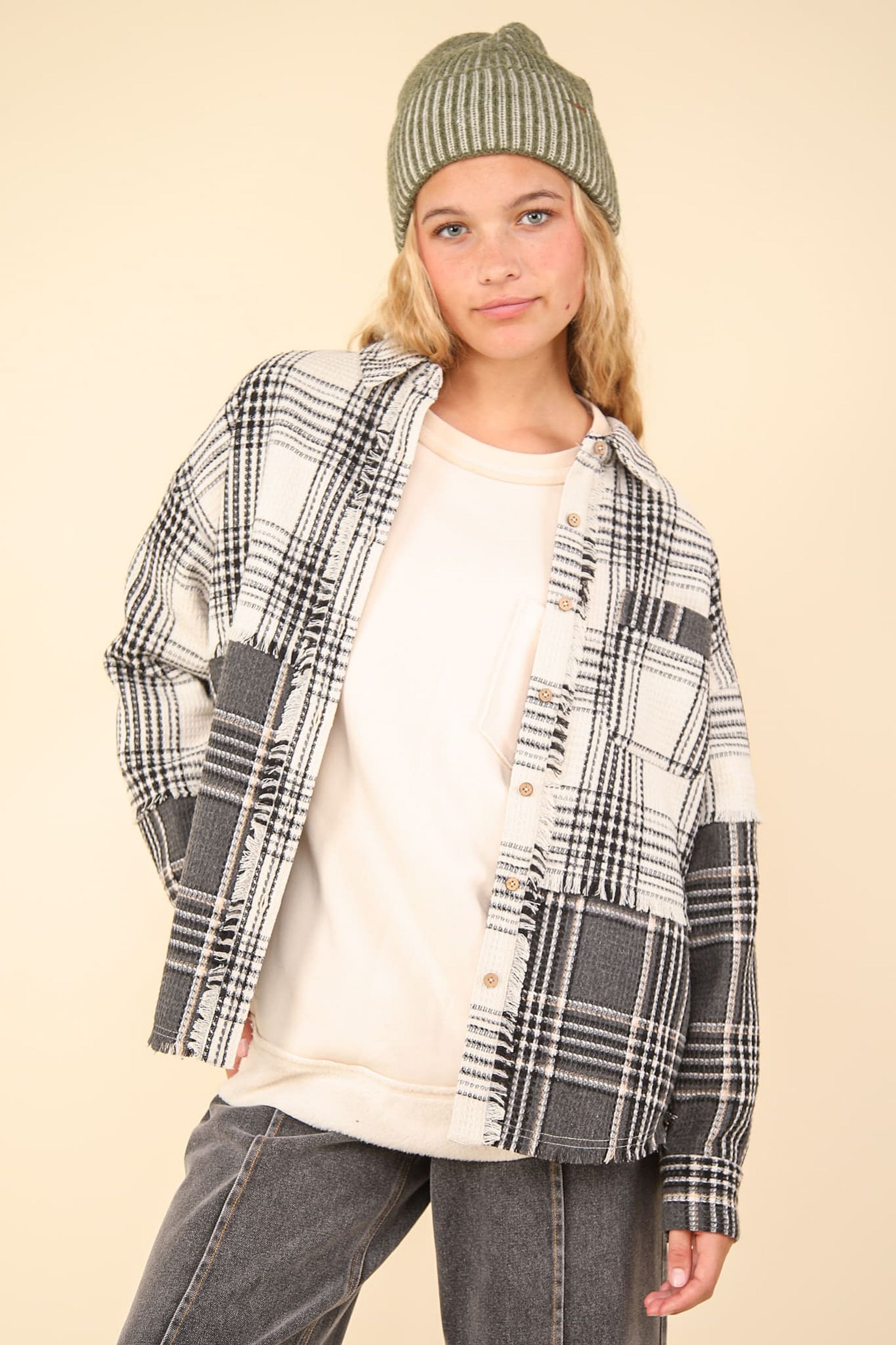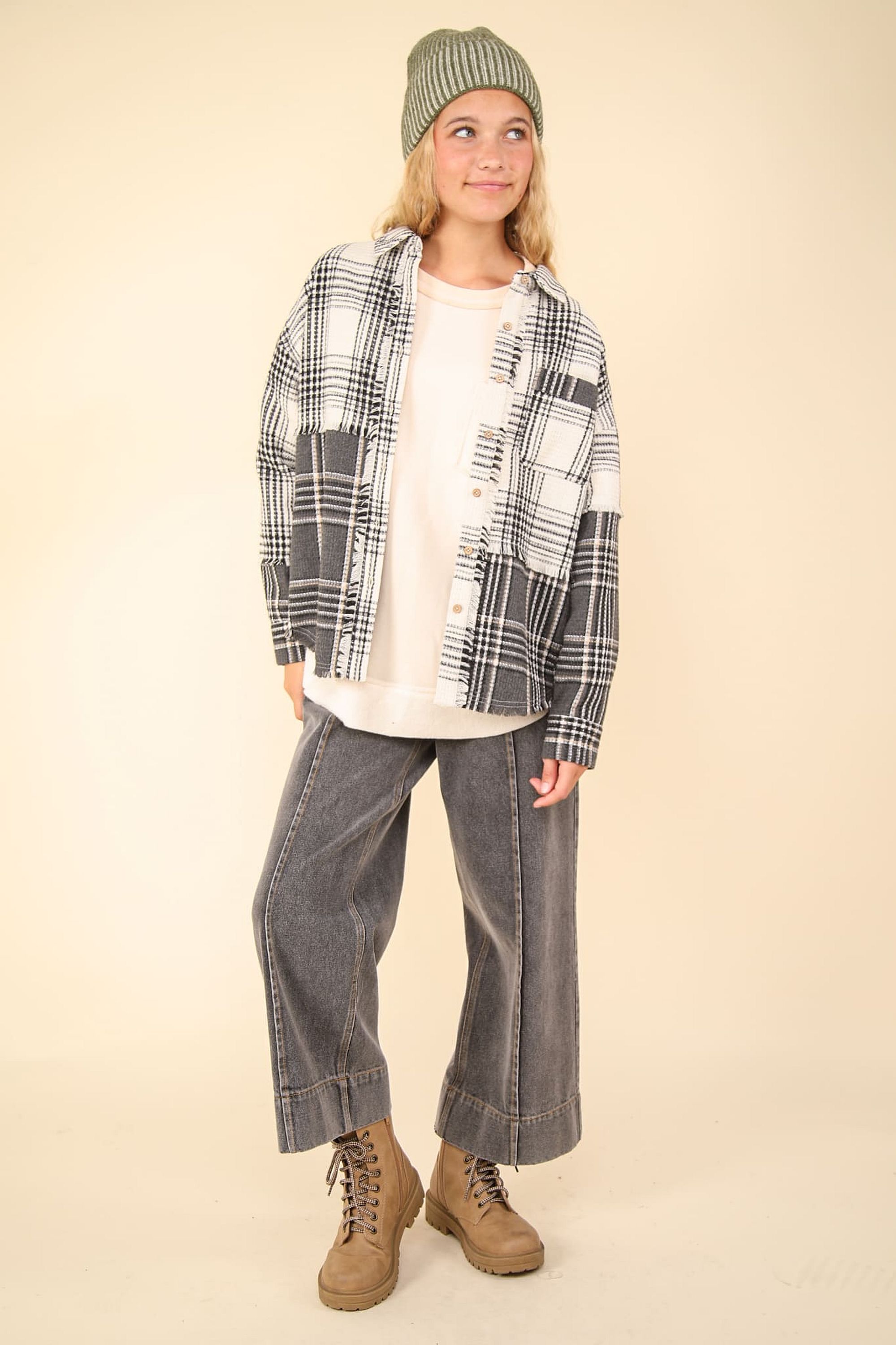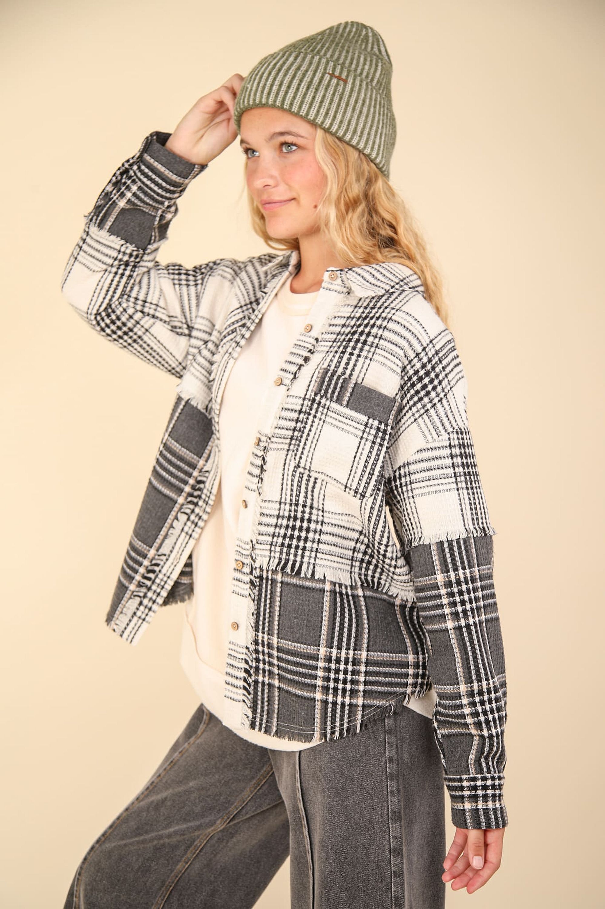 Mixed Plaid Shacket - Ivory ONLY LARGE LEFT