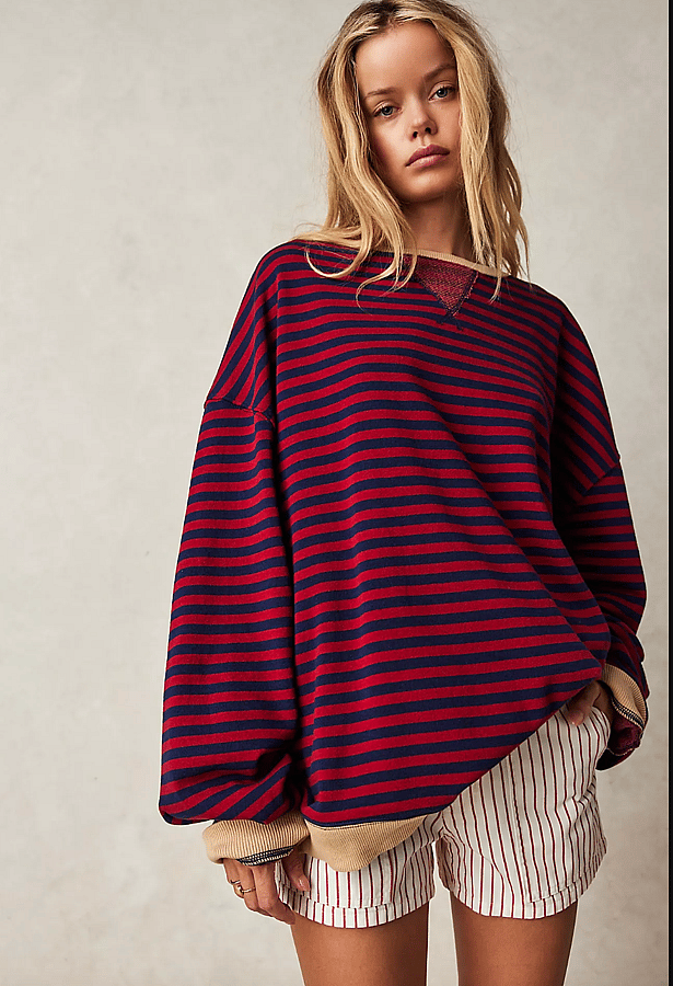 Free People Striped Varsity Vibes Shirt