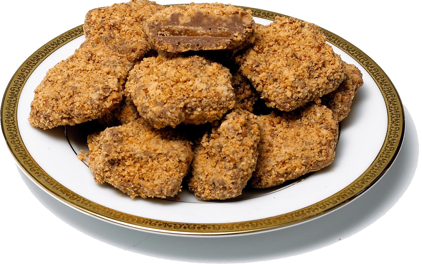 Crispy, rich handmade toffee covered in milk chocolate and finely ground almonds. #forthehostli
