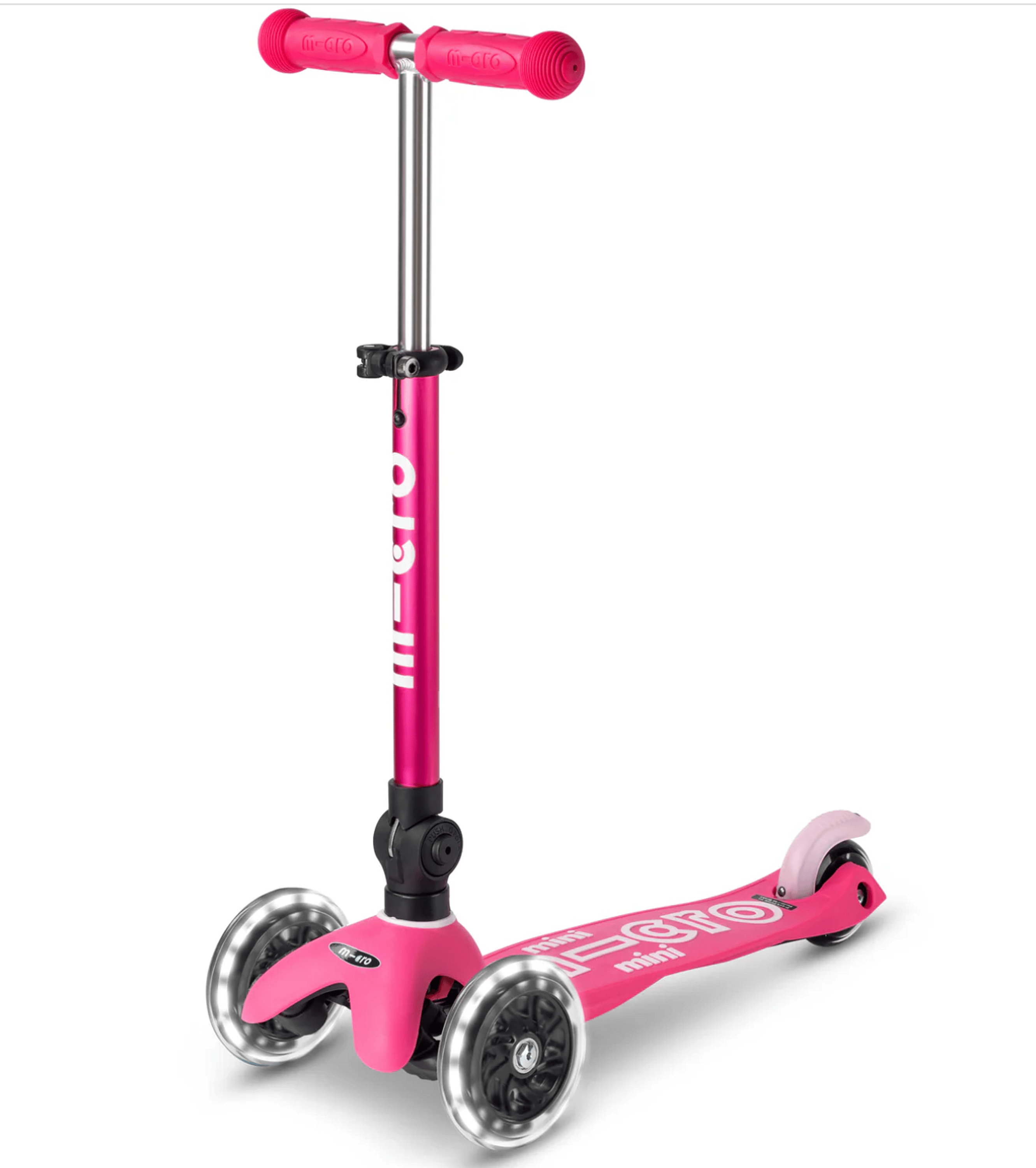 The Foldable LED Mini by Micro is for traveling tots and kids on the go. The new folding mechanism means that taking your child’s Mini with you wherever you go is now easier than ever - just click, fold, and carry by the T-bar. Plus, the wheels light up for additional fun!